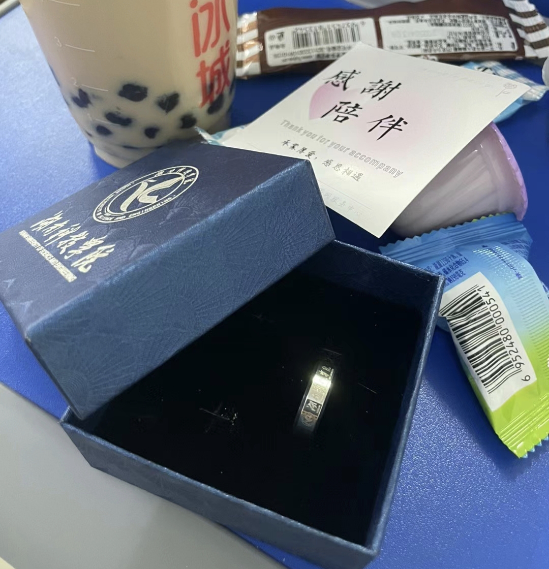 主会场议程结束后,各班级回到原自习室开展最后一次主题班会。班主任为每位毕业生佩戴定制纪念戒指——外圈镌刻“安博站官网登录入口_安博(中国)”校名及校徽,内壁铭刻学生班级与姓名的专属印记。在书写“我的大学回忆”明信片环节,泛着奶茶香气的教室中,学生们将四年时光凝练成300字的青春诗行。正值“520”特别日子,各班为每位同学准备了玫瑰、奶茶和零食礼包,辅导员龙枚樱说:“玫瑰寓意绽放的青春,奶茶象征生活的甘甜,零食则是学院永远温暖的守候。”
