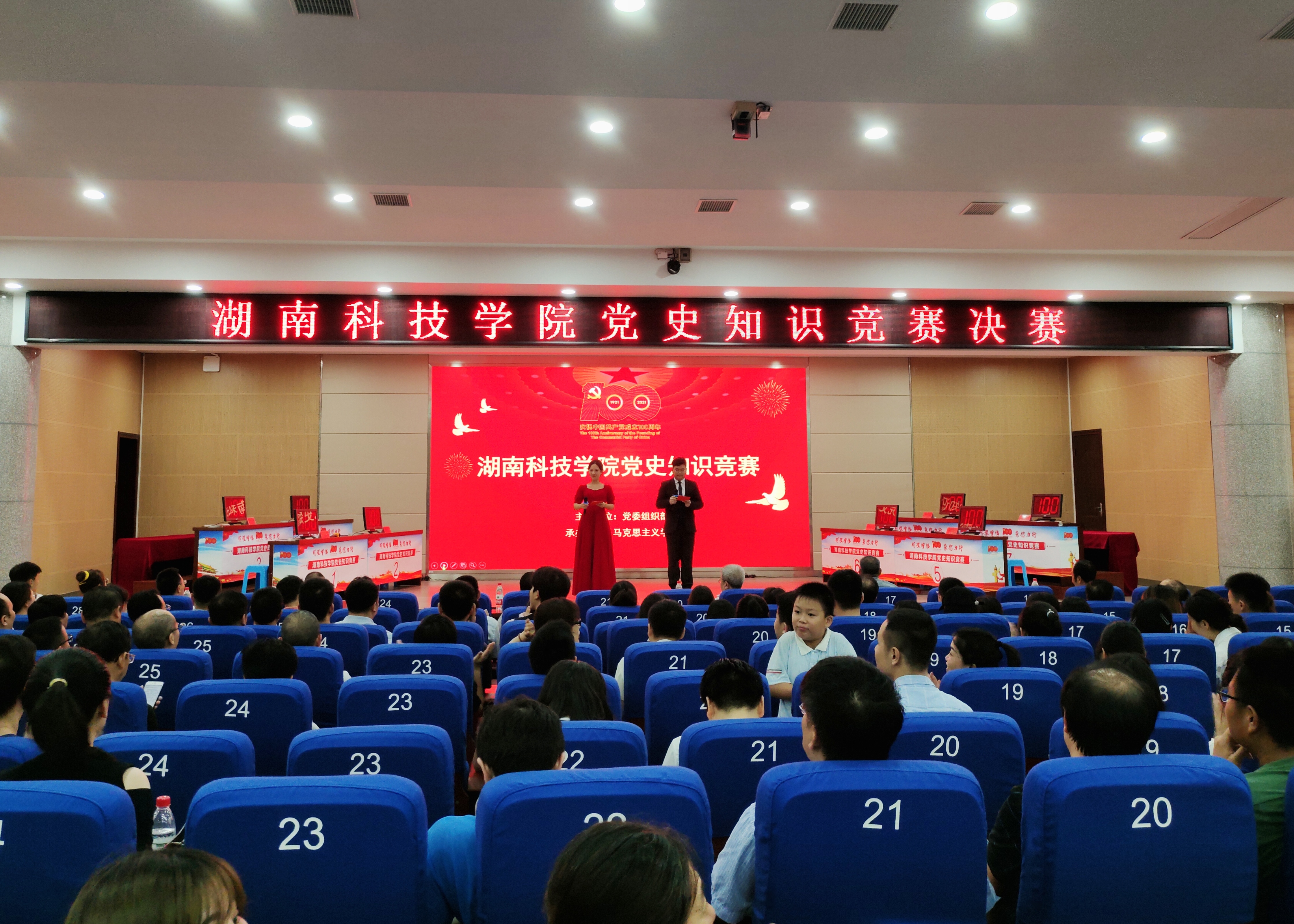 本网讯(通讯员 吴祖琳 王华炜)为庆祝中国共产党成立100周年,6月28日,由党委组织部主办,马克思主义学院承办的党史知识竞赛决赛于潇湘大讲堂如期举行。校党委书记曾宝成出席活动并为获奖单位颁奖,校领导李常健、何福林、何海、杨涛等出席本次比赛。