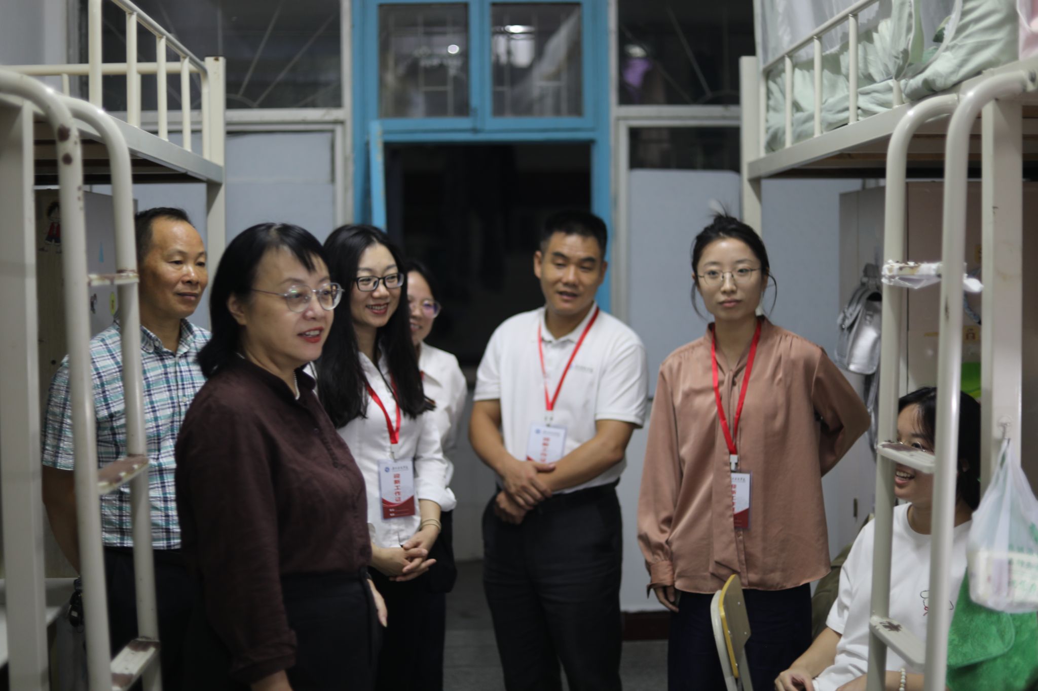 本网讯(记者 吴美林)为切实了解2025级新生入学后的情况,传递学院的关怀与温暖。9月20日晚,马克思主义学院院长廖雅琴、党总支书记高丹、副院长唐立和郭开虎、全体辅导员和新生班主任集体下寝看望我院新生。