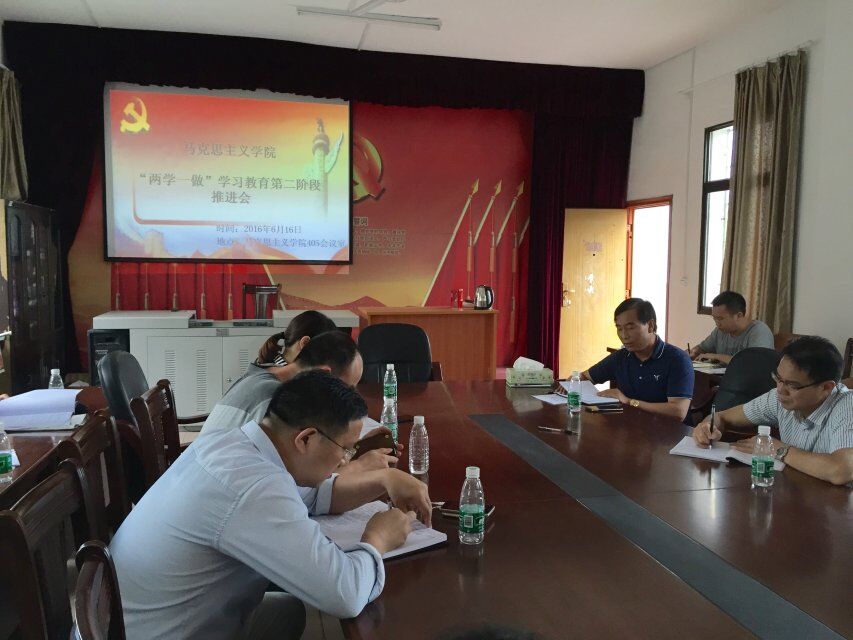本网讯6月16日,我院党总支书记唐森树同志在会议室405主持召开了我院“两学一做”学习教育第二阶段推进会,部署下阶段“两学一做”学习教育主要内容,并就纪念中国共产党诞生95周年系列活动作出具体安排。全体党员教师参加了会议。