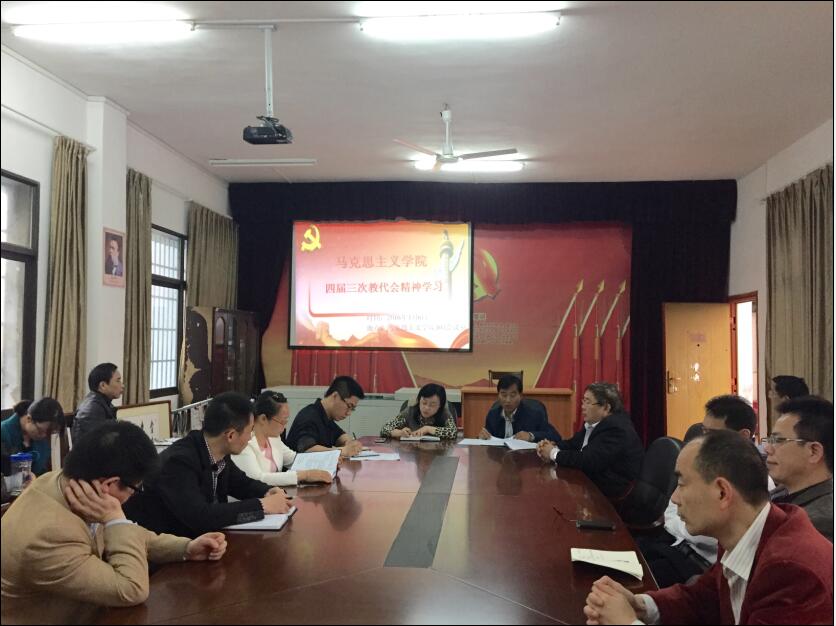 本网讯 马克思主义学院于2016年4月6日上午该院会议室405学习和讨论了校长曾宝成作的题为《聚焦目标任务,狠抓工作落实,为建设高水平应用型大学打下坚实基础》的工作报告和《安博站官网登录入口_安博(中国)“十三五”事业改革与发展规划》。