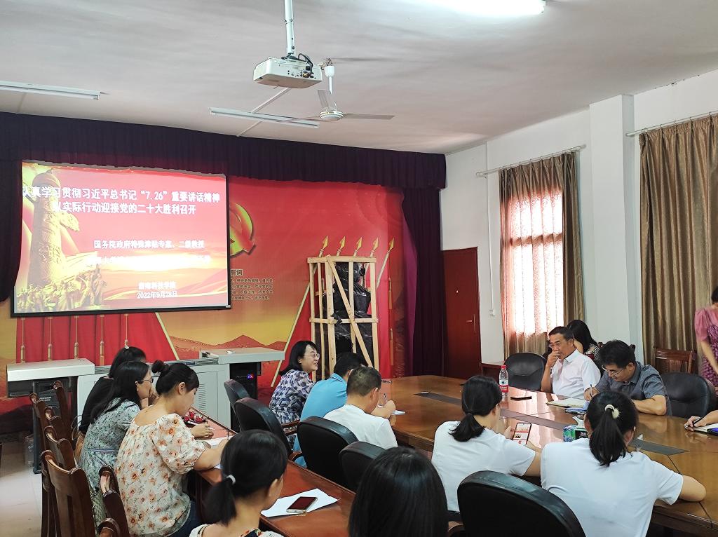 本网讯(记者 符小勇)9月28日上午,国务院政府特殊津贴专家、二级教授、湘潭大学韶峰学者、博士生导师曾天雄教授应邀来我校马克思主义学院作题为《认真学习贯彻习近平总书记“7.26”重要讲话精神 以实际行动迎接党的二十大胜利召开》的专题辅导报告,并与我校马院青年教师亲切交流。辅导报告会由马克思主义学院院长廖雅琴教授主持。
