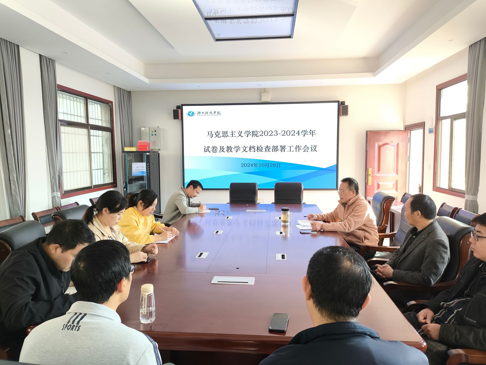 为加强教学管理、保障教学质量,10月28日,马克思主义学院召开2023 - 2024学年试卷和教学文档检查工作会议,会议由学院分管教学副院长杨军主持,各教学系部主任出席。