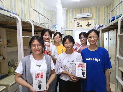 “这个是学长推荐给我们的,他建议我们在假期多读一些与本专业有关的书籍,了解我们党的思想路线,从中汲取奋进力量。”住在荷园二栋410寝室思政2101班的许碧君同学告诉廖雅琴院长,这本书把深奥的马克思主义理论知识以简单易懂的话语表达出来,同学们读起来不仅不吃力,而且更利于同学们吸收这其中的思想精华。