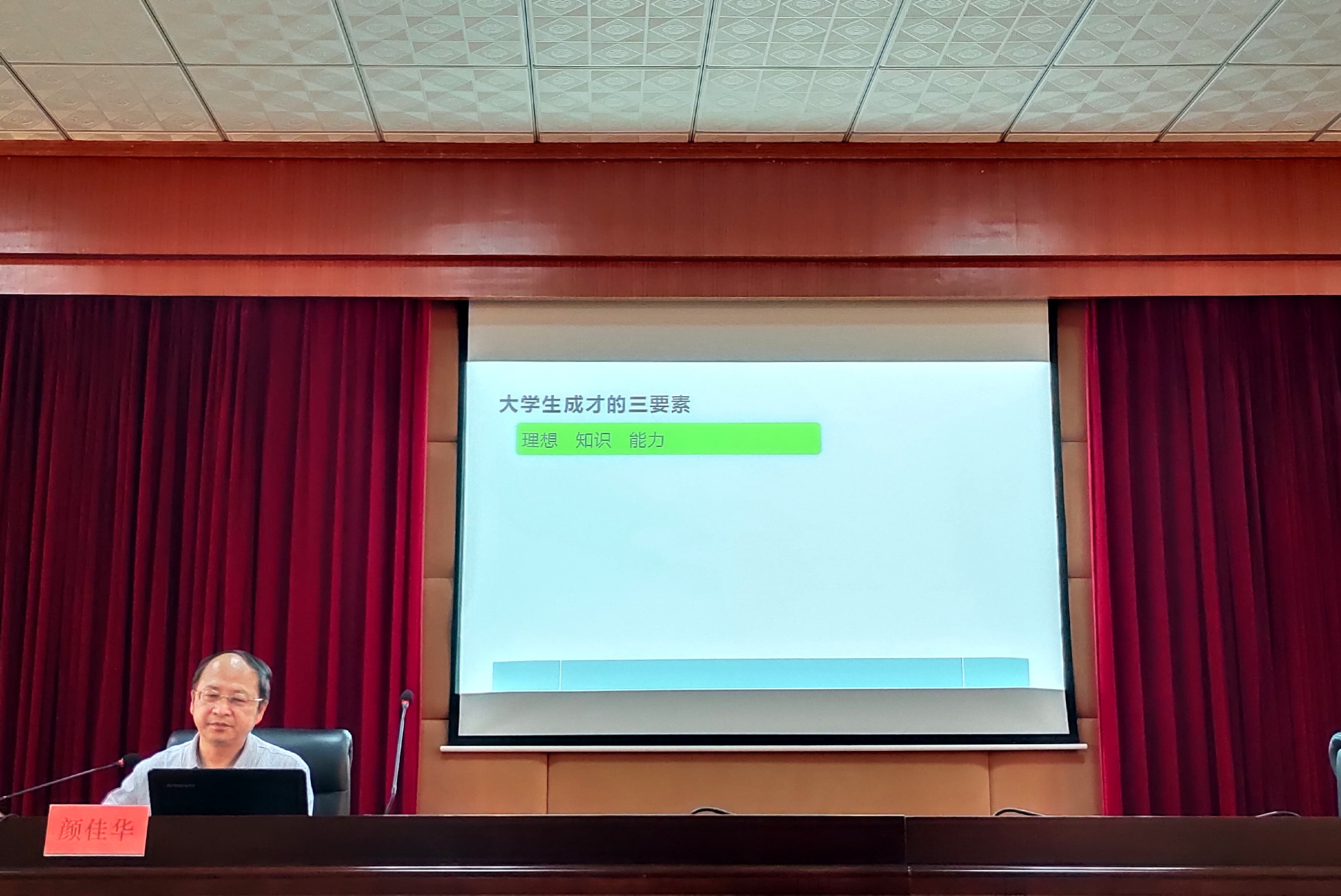 在讲座中,颜佳华教授从理想、能力、知识三个方面切入,强调其是大学生成才的三个要素,并依次向同学们进行了阐述。