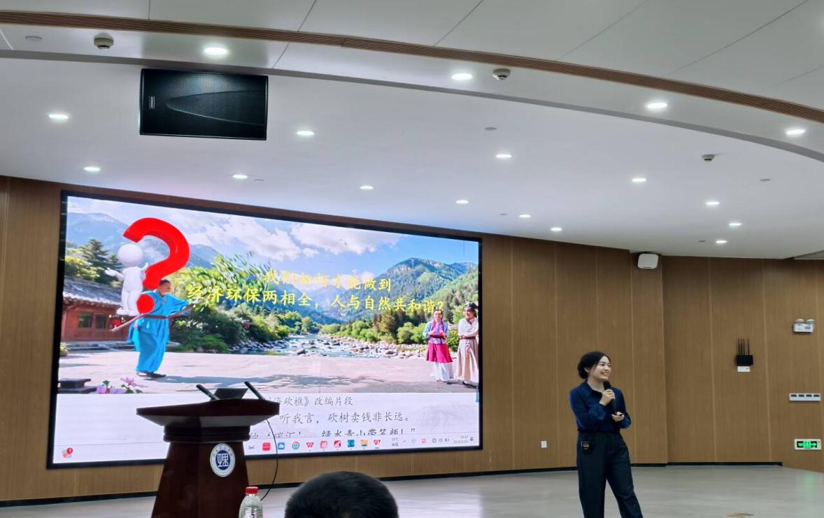 陈小燕以“建设社会主义生态文明”为主题,聚焦习近平生态文明思想,融入湖南“守护一江碧水”“绿色产业转型”等本土实践,构建“绿色文明革新—绿色变革实践—绿色变革担当”三大教学模块。课堂上,她以“文明演进四大阶段”理论阐释为基,结合“‘两山’理念引领三湘生态惠民”典型案例剖析,并通过“青年与全球生态文明建设”互动环节,引导学生在原著研读、热点思辨中感悟理论逻辑与实践力量。多元教学模式激发深度参与,现场研讨氛围热烈。
