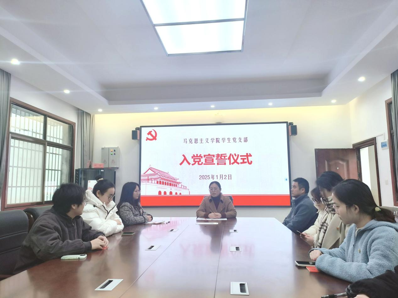 (通讯员 邓晶)1月2日,马克思主义学院学生党支部于鹤鸣楼405会议室举行2024年下期新发展党员入党宣誓仪式,党总支书记陈玉皎、党总支副书记高丹、学生党支部书记曹惠如参加仪式,仪式由曹惠如主持。