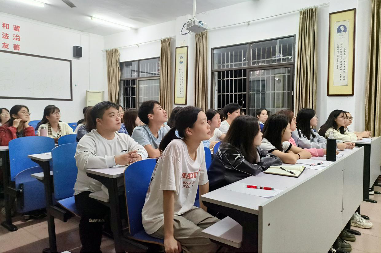 本网讯(记者 黄丽珠)为深入学习贯彻党的二十大精神,加强思想政治教育,10月19日晚,我院学子于鹤鸣楼406教室参加“以青春之名,续时代华章”主题二十大精神理论宣讲活动。本次宣讲由团市委“党的二十大精神”理论宣讲团成员刘亚鹏主讲。