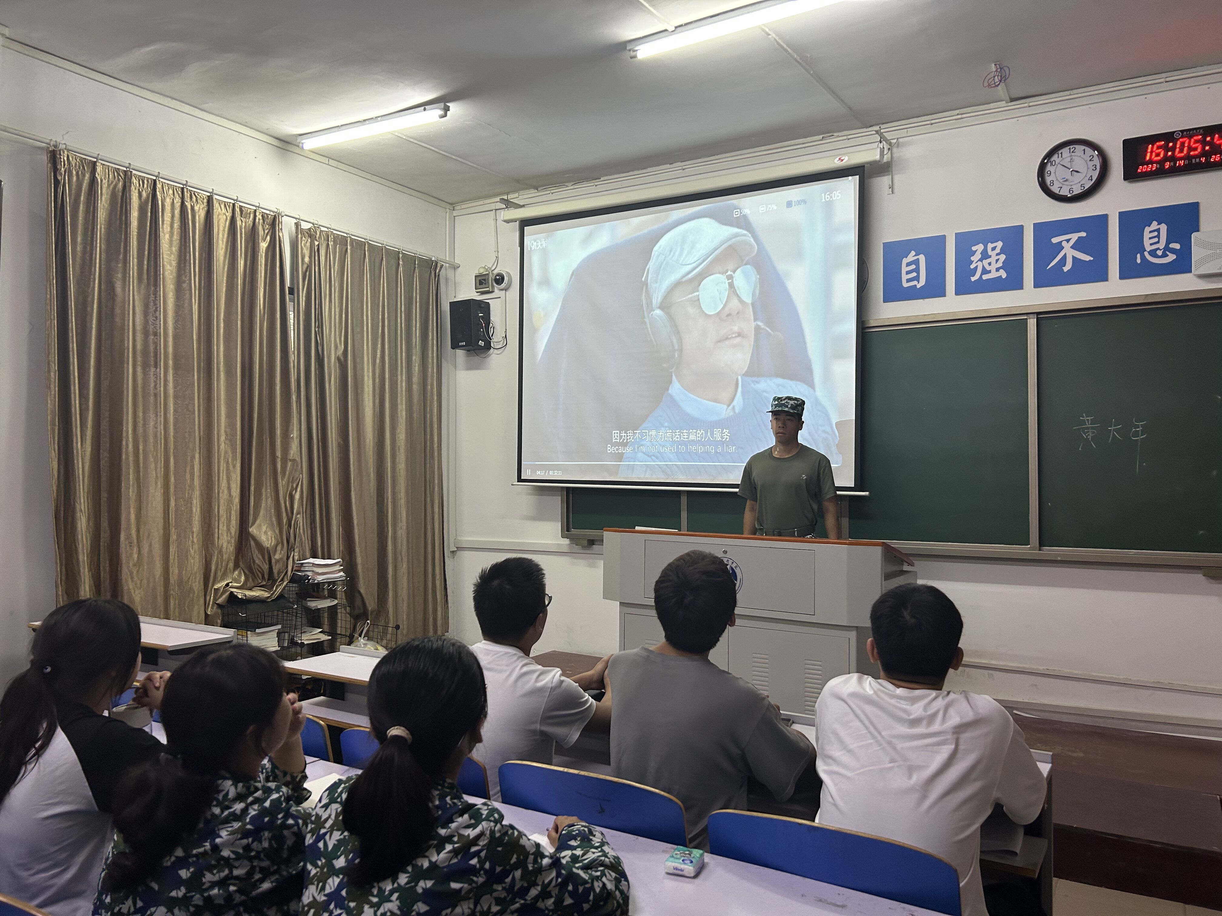首先,军训教官向全体同学介绍了黄大年同志的先进事迹,强调了黄大年同志至诚报国、淡泊名利、忘我奋斗的精神品质,他说:“‘振兴中华,乃我辈之责’是黄大年同志的经典语录之一,希望同学们也牢记于心,承担起属于你们的责任,为实现中华民族伟大复兴的中国梦而奋斗。”