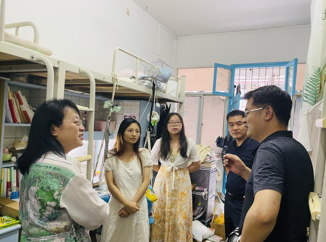 本网讯(记者 左琛)为进一步深入了解我院2023届毕业生的生活、就业情况,我院院长廖雅琴、党总支书记郑向晖、副书记高丹于6月7日走访毕业生寝室,为学生送去殷切关怀与问候。