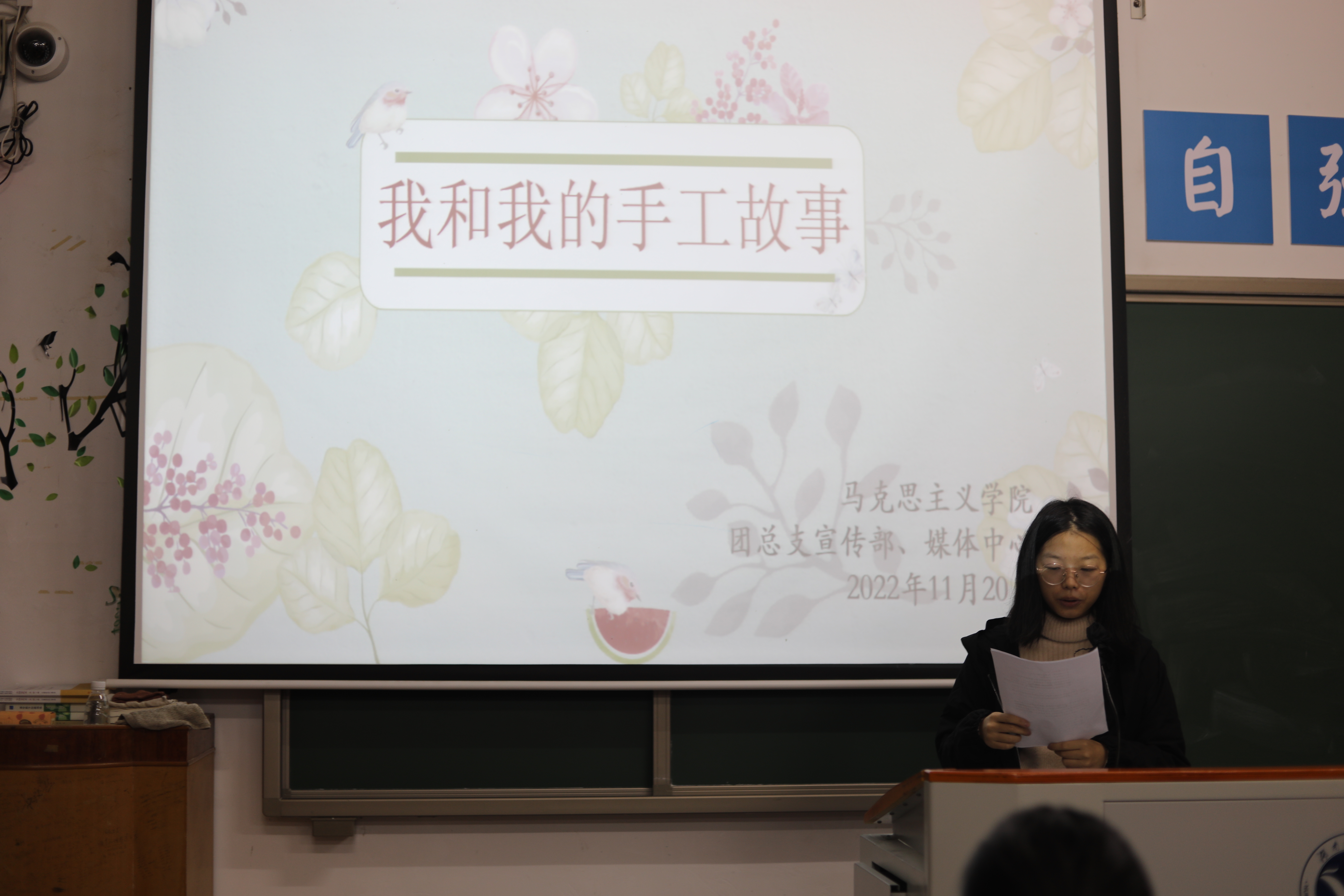 本网讯(记者 左琛、姚茹)11月20日晚,马克思主义学院于鹤鸣楼501教室举办“我和我的手工故事”主题手工作品比赛。此次比赛由2201班班主任黄丽、学生副班主任杨文静以及6位学生干部担任评委。