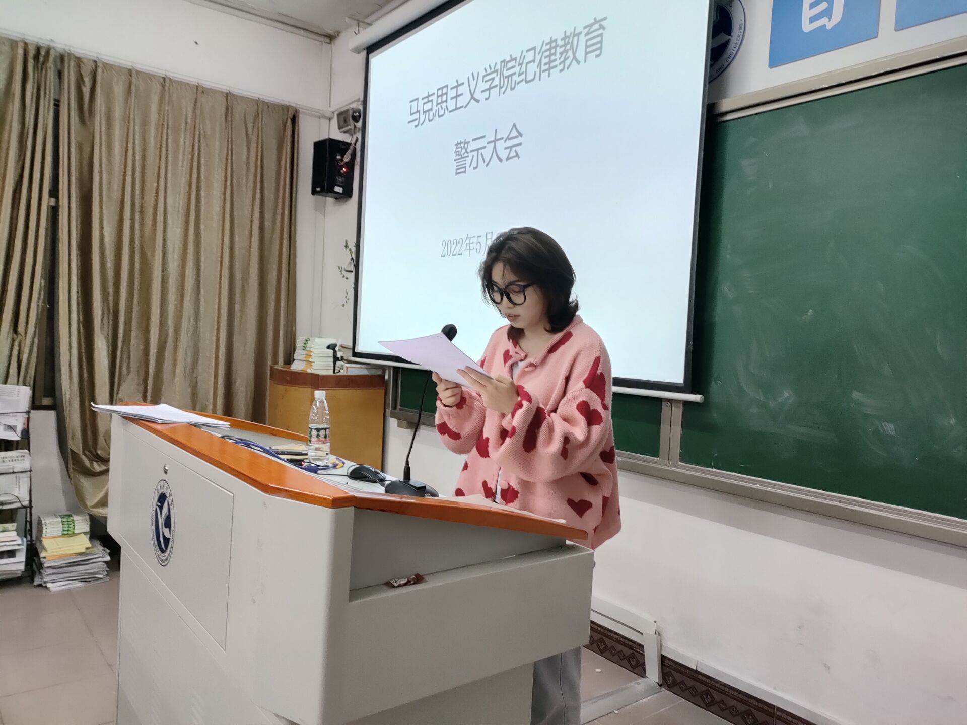 本网讯(记者 张一帆)为进一步提高同学们的纪律意识,强化学风班风,5月23日晚,马克思主义学院于鹤鸣楼501教室召开纪律教育警示大会。此次纪律教育警示大会由马克思主义学院团总支书记胡非老师主持,21级全体学生参加。