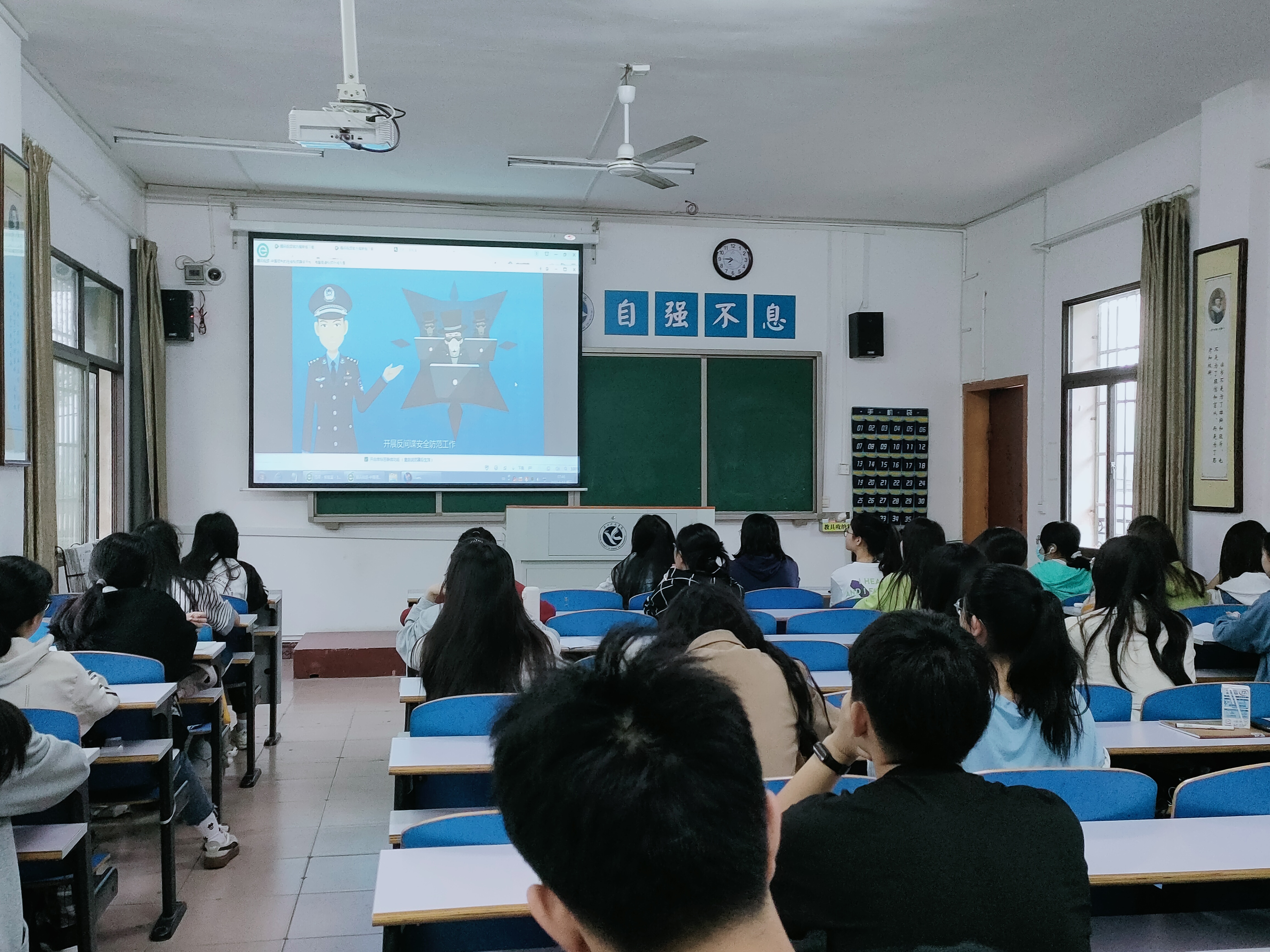 本网讯(记者 谢姣娇、张一帆)2022年4月15日是第七个全民国家安全教育日,为巩固同学们总体国家安全观,感悟新时代国家安全成就。4月13日,马克思主义学院组织学生于鹤鸣楼406、407以及501教室开展国家安全教育日宣传活动。