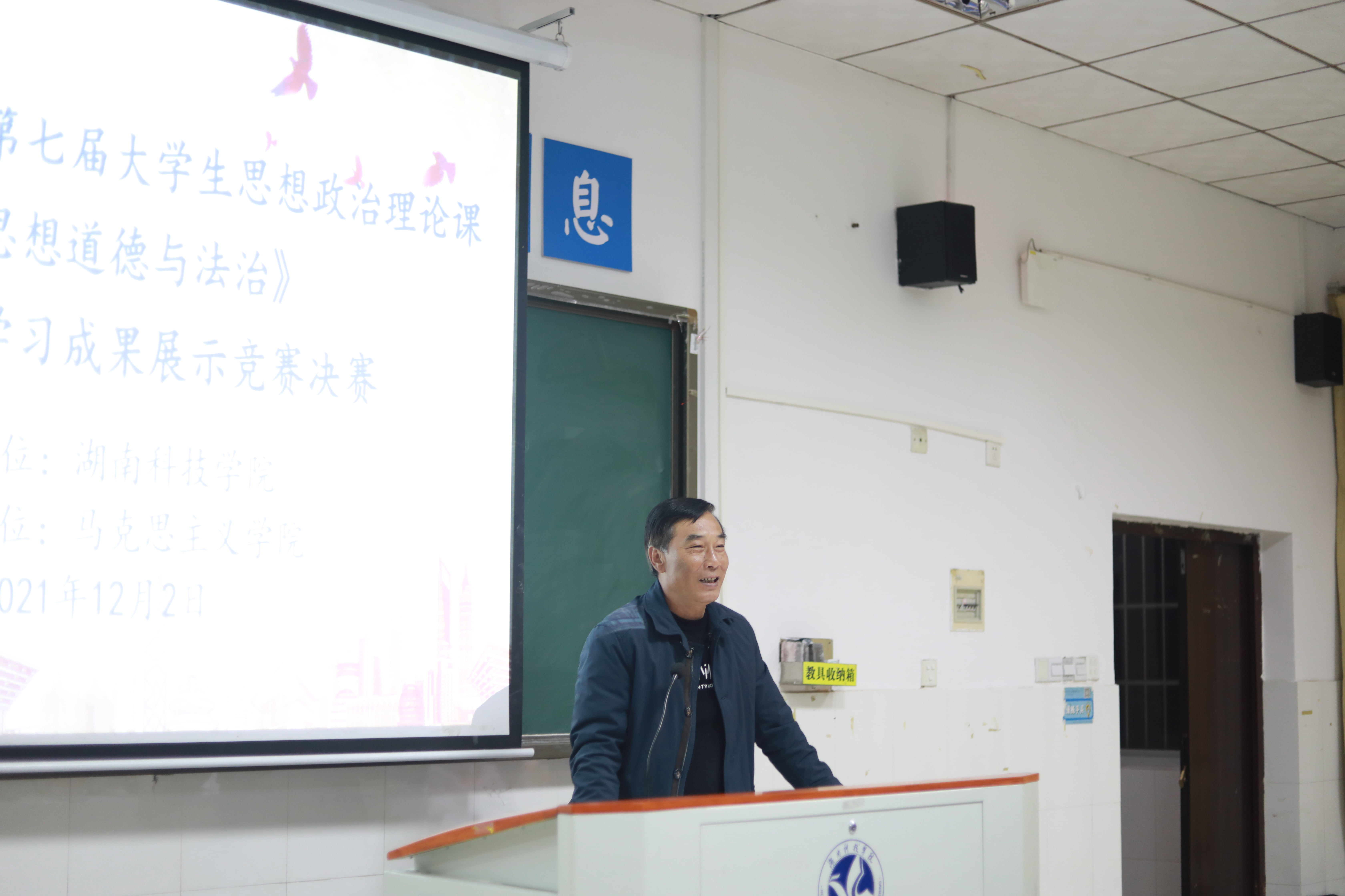 本网讯(记者 张一帆)“我们要加强对《思想道德与法治》的学习,坚持以道德滋养法治精神,有效推进全面依法治国。”12月2日晚,由安博站官网登录入口_安博(中国)主办,马克思主义学院承办的第七届大学生思想政治理论课——《思想道德与法治》研究性学习成果展示竞赛决赛于逸夫楼101教室举行。马克思主义学院专职组织员唐森树、党总支副书记兼副院长高丹、副院长李定坤担任评委。