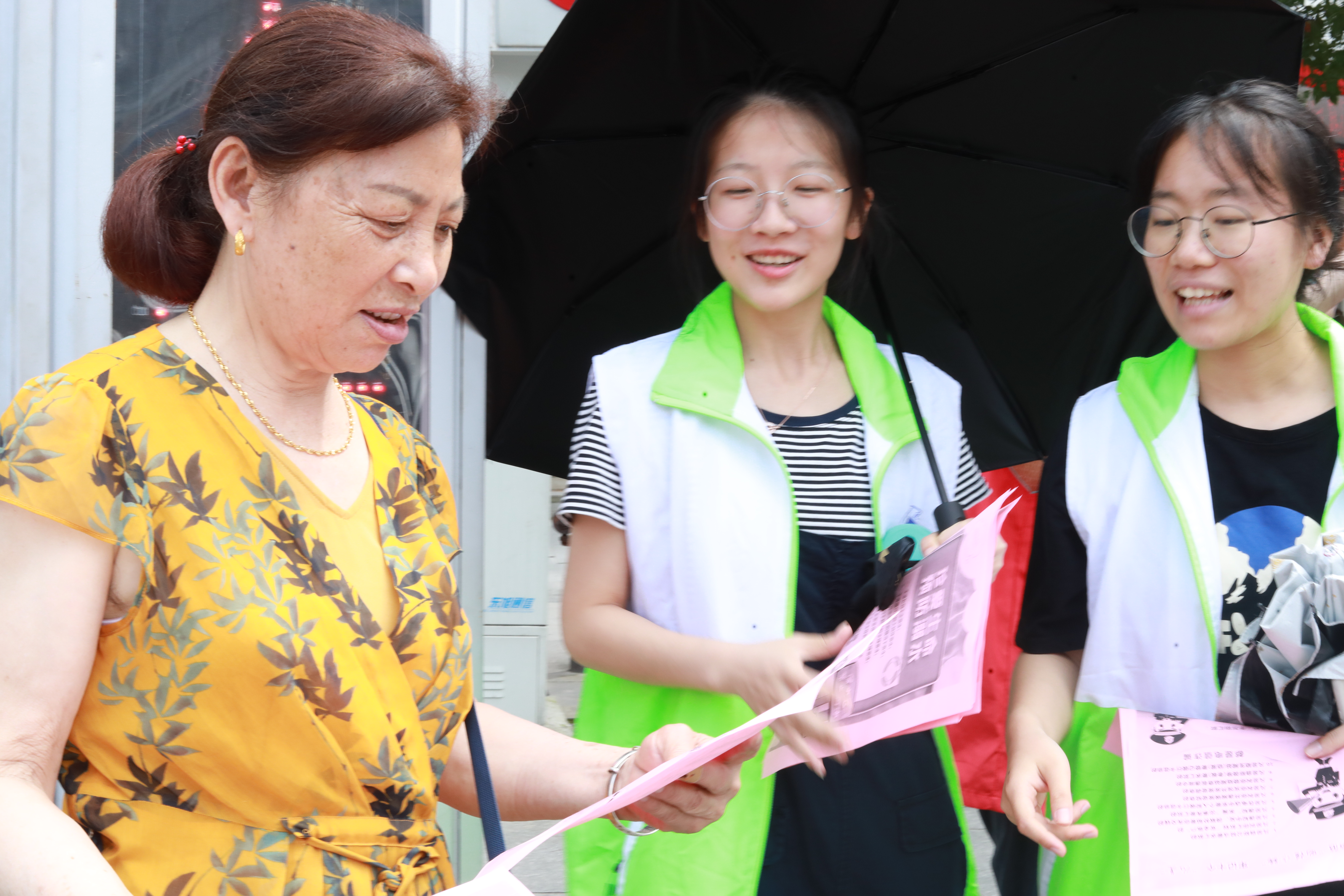 “不管是骑神马,还是坐浮云,安全第一。”走访开始,16名志愿者的身影出现在了茆江桥社区。他们首先用幽默风趣的宣传标语吸引了居民的注意力。一人把关一处安,众人把关稳如山。志愿者们准备了有关交通安全、消防安全、防溺水安全、防电信诈骗安全知识的宣传海报,并发放给居民,提醒居民守护好自己的“钱袋”,不要轻易相信陌生人。又恰逢暑期为溺水事故多发期,志愿者着重针对儿童分析了溺水事例(“学生私自下水库溺水身亡”)带来的危害与结果,警醒儿童:生命只有一次,严禁下河游泳。志愿者们呼吁各位家长关心儿童去向,履行好监护责任。