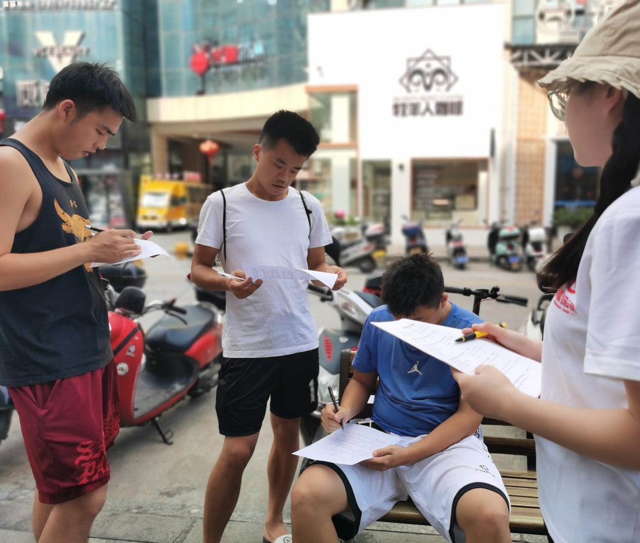 安博站官网登录入口_安博(中国)马克思主义学院学生在街上对居民进行红色文化问卷调查。