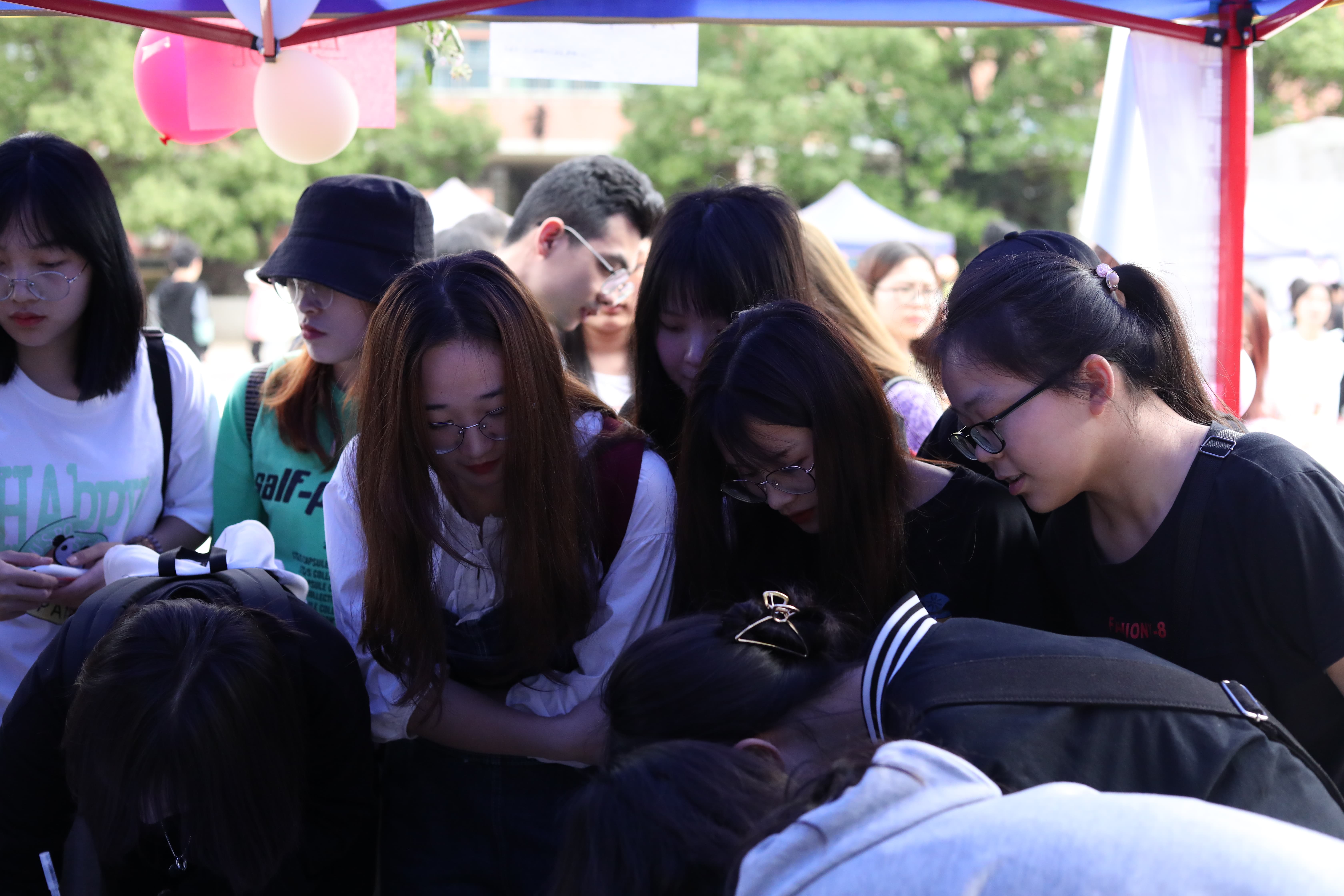 本次活动主要以游戏的形式进行,共设有“口诵墨香——念出繁体字”、“抛砖引玉——将沙包扔到指定区域”、“掷骰答题——‘四史’系列答题”三个有趣的小游戏。活动海报一经展出,就吸引了大批同学前来签到报名并参于游戏,其中也不乏许多其他院系的同学。