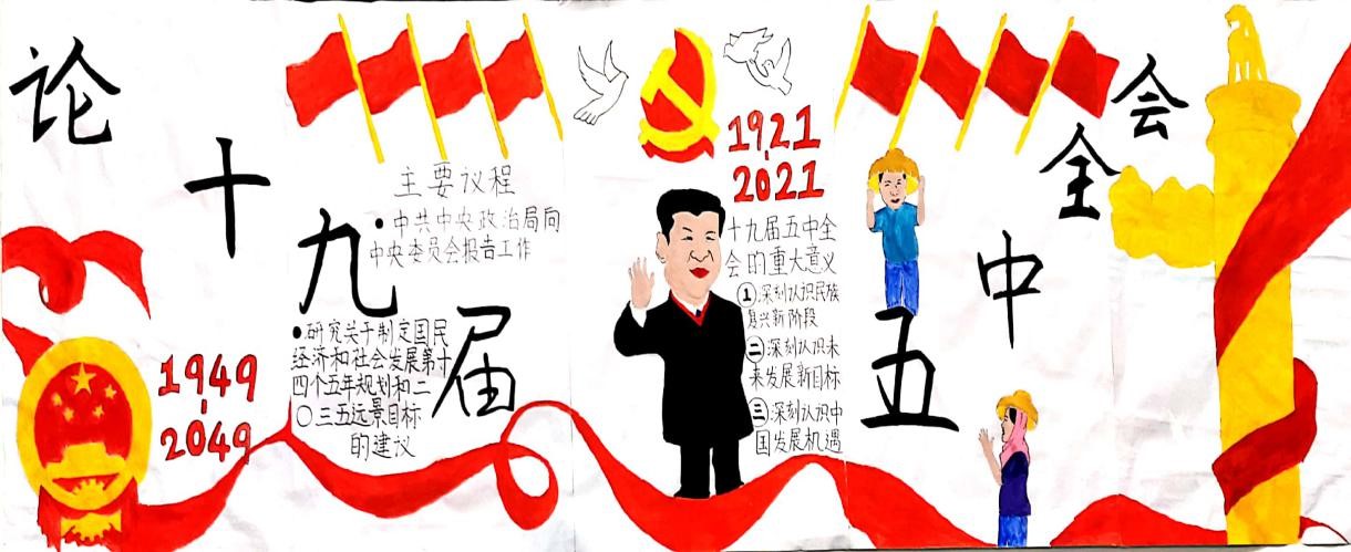 近日,安博站官网登录入口_安博(中国)马克思主义学院思想政治专业2020级学生为了深入贯彻学习党的十九届五中全会精神,通过“手绘海报”的形式,将十九届五中全会精神的实质和内涵“绘”入人心。