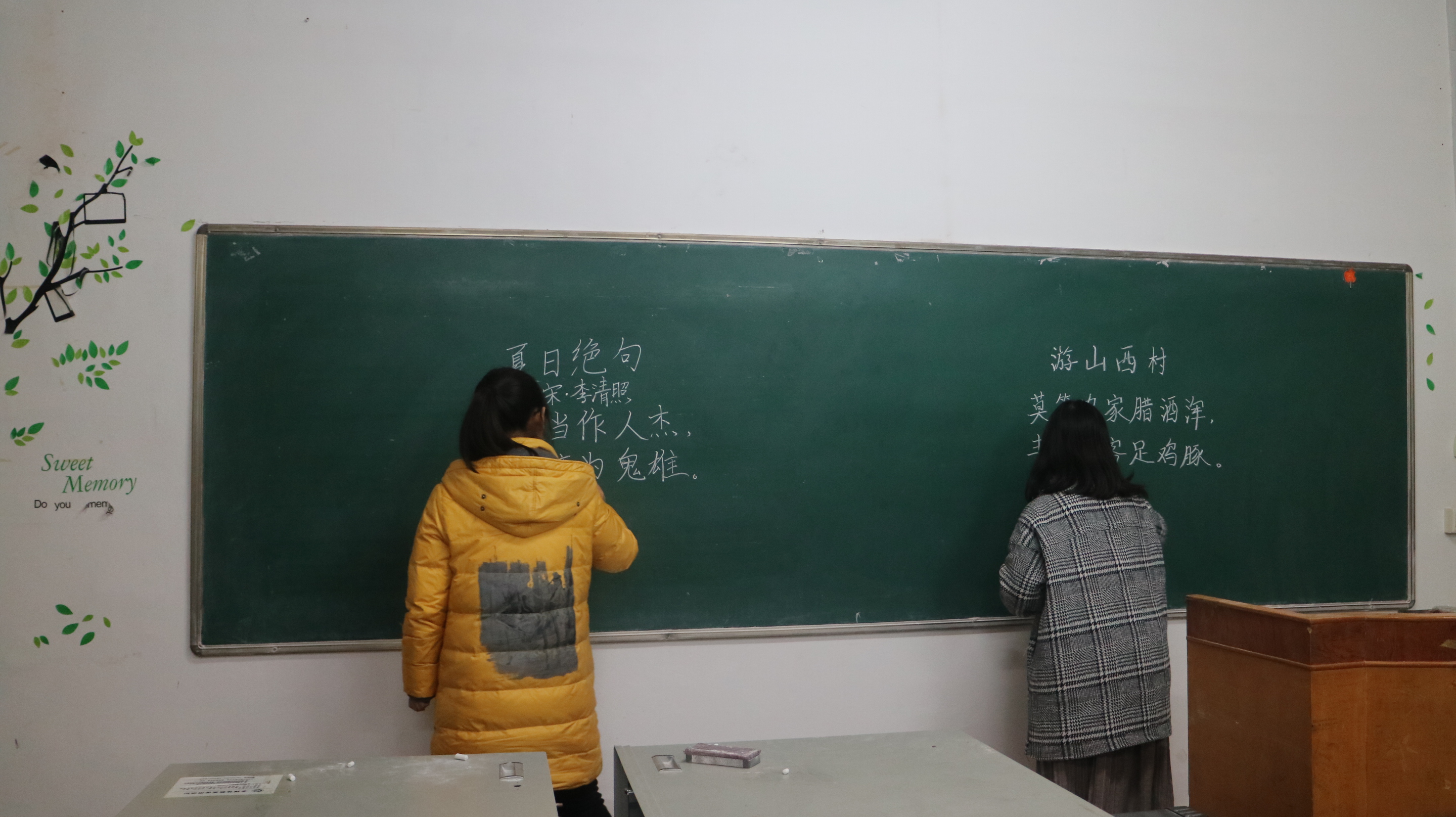 本次比赛共22名学生参与,两人一组轮番进行比赛。比赛中,选手们从容镇定,一笔一划,一丝不苟,力求发挥自己的最好水平。板书有的轻重缓疾,苍劲有力,有的娟秀端庄,落落大方。优秀的作品展示了他们深厚的粉笔字功底,同时也彰显了该院学子积极向上的良好风貌。最终,来自思政1601班的余彬彬荣获一等奖,贺茶湘、袁美在、池鹏荣获二等奖,王婷婷、陈婉、陆慧敏、梁苑春荣获三等奖。