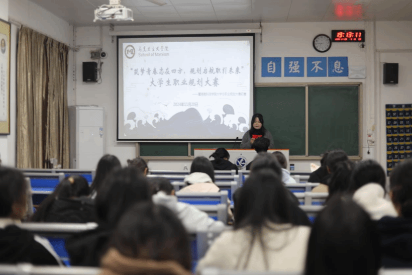 本网讯(记者 杨鑫杰 陈乐琪)11月20日,马克思主义学院于鹤鸣楼501教室举办大学生职业规划大赛院级决赛。成长赛道、就业赛道各15名选手参加,由辅导员曹惠如及思政24级班主任吴讷、周勇担任评委。