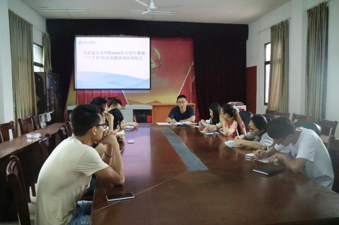 本网讯(通讯员 裴滢) 7月4日下午,马克思主义学院2016年暑期大学生“三下乡”社会实践活动启动仪式在学院405会议室举行。学院副书记兼副院长李观求老师参加启动仪式。