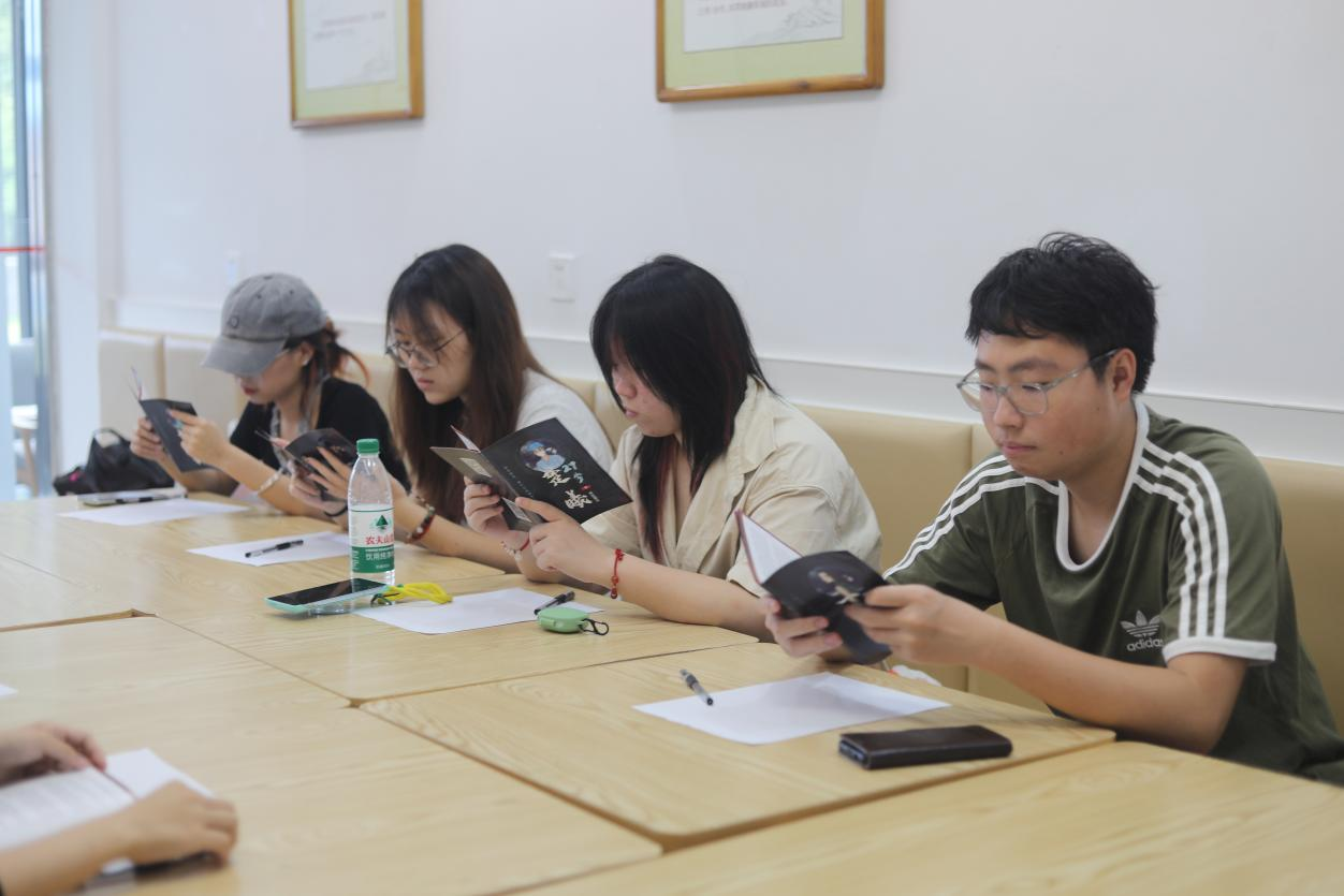 剧本结束后,同学们围坐分享感悟。参与《红豆》剧本的财管2401班向慧感慨:“第一次通过这种方式感受徽州儿女的家国情怀,那些含蓄又深沉的情感,让人忍不住热泪盈眶。”