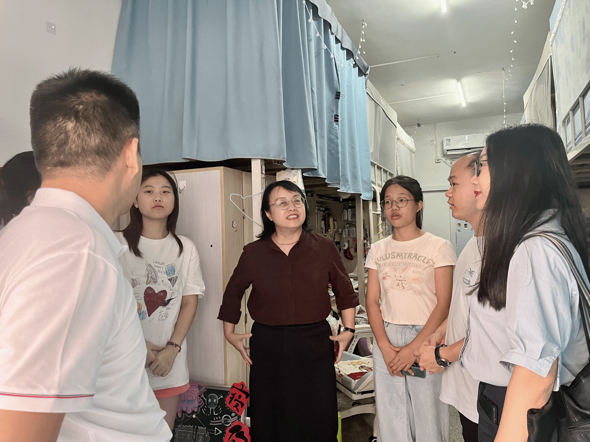 通讯员(吴志伟)9月7日,我院院长廖雅琴、党总支书记高丹、副院长唐立、全体辅导员和班主任深入学生宿舍,开展新学期集体下寝活动。本次活动旨在加强师生沟通交流,了解学生假期学习生活情况,传递学院关怀。