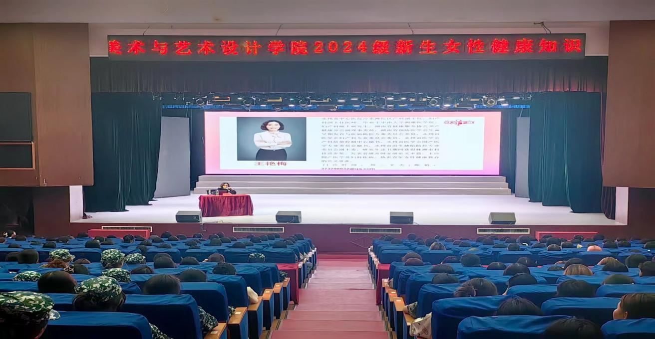 本网讯(通讯员 唐天田) 9月24日晚上,美术与艺术设计学院在音乐演播厅举行女性健康教育专题讲座。永州市中心医院冷水滩院区产科副主任王艳梅担任主讲,学院2024级全体女生参加。