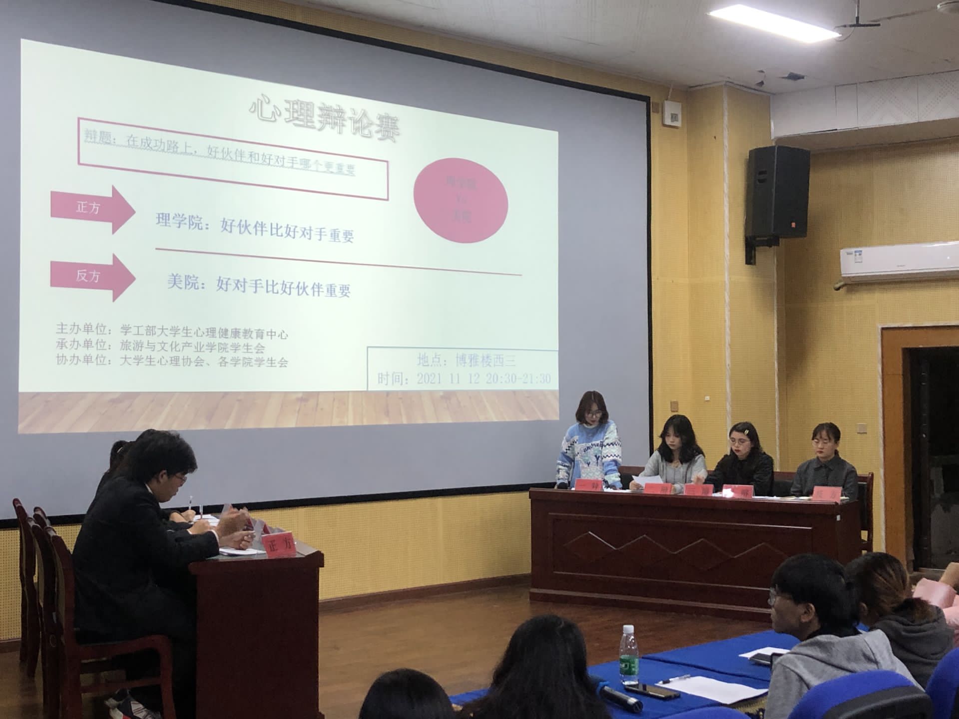 本网讯(通讯员周怡君)2021年11月12日晚,安博站官网登录入口_安博(中国)于博雅楼开展了八强进四强的辩论赛。本次辩论赛,主办单位为学工部大学生心理健康教育中心,承办单位为旅游与文化产业学院学生会,协办单位为大学生心理协会及各学院学生会。本次辩论赛的辩题为“在成功路上,好伙伴和好对手哪个更重要”,正方为持“好伙伴比好对手重要”观点的理学院与持“好对手比好伙伴重要”观点的美院。