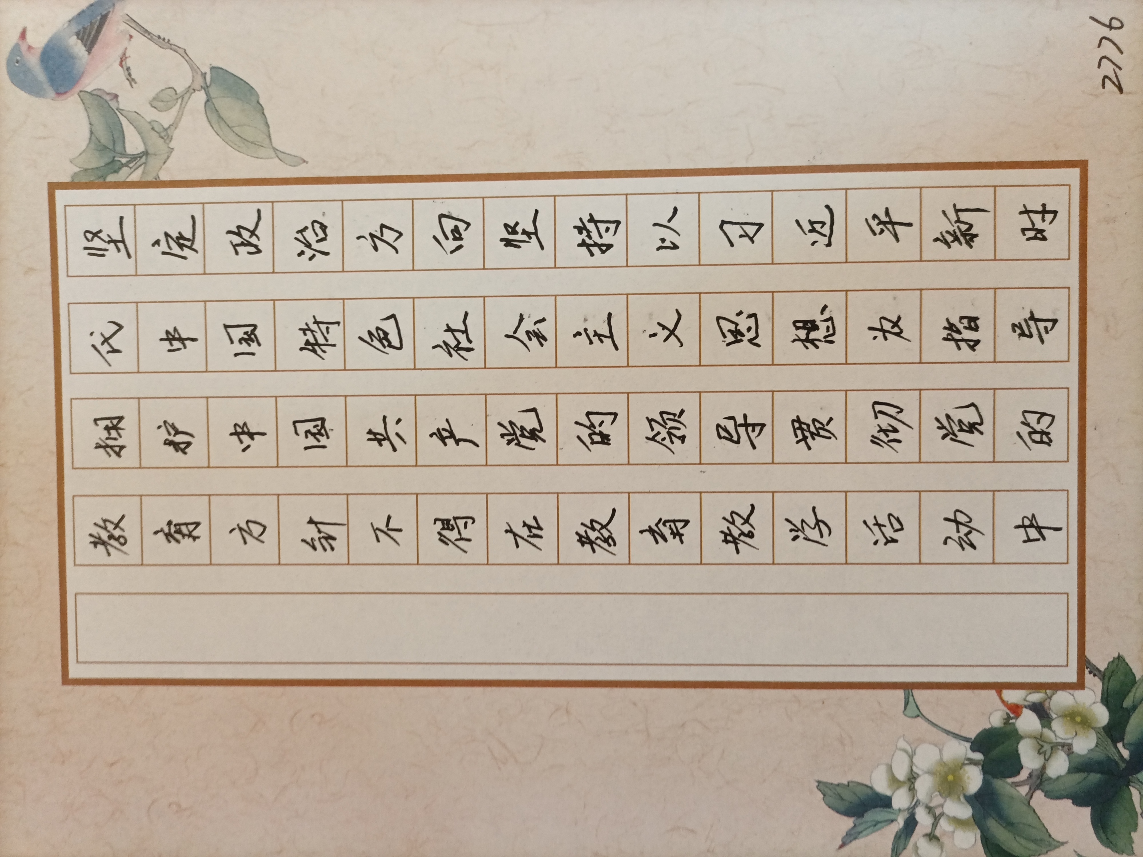 在党员活动室,教师党员们首先认真学习研讨了十九届六中全会精神、新时代教育评价改革实施方案、师德师风建设与管理条例等系列文件,然后党员教师根据学习内容在专用作品纸上用心手抄每段金句,书写个人体会。书写作品中既有常见的楷体和行书字体,也有小篆字体,一张张作品笔画流畅,结构匀称,美观大方。