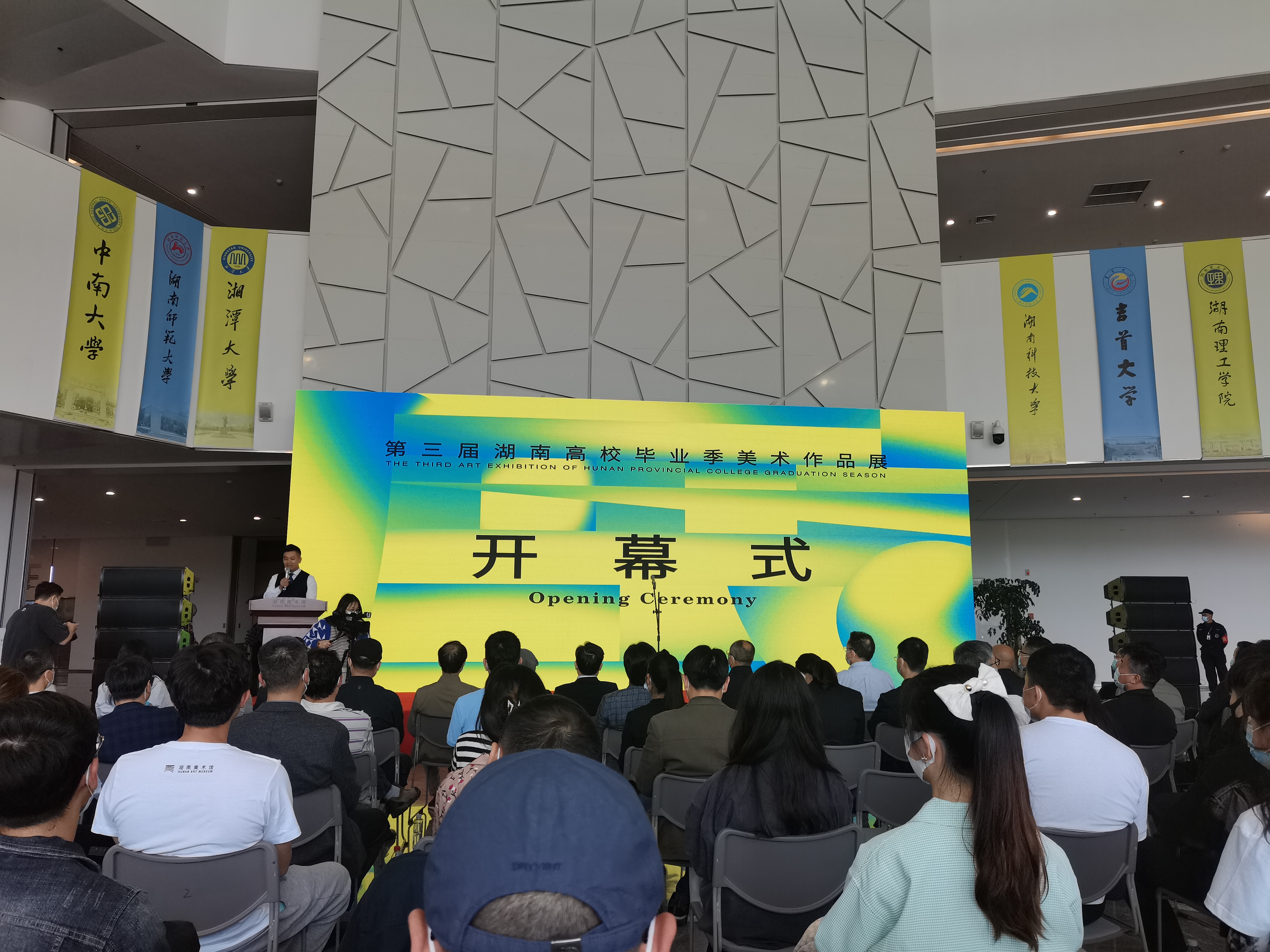 本网讯(通讯员 宋宗爱)第三届湖南高校毕业季美术作品展于5月20日在湖南省美术馆开幕,美术与艺术设计学院2022届毕业生黄子浩、覃春玲、胡麟、王义秋、肖贵阳、张浩哲、王辰琪、任俊桦、张明旺、张子旭、颜玉睿、崔兴波12位同学的作品入选展览。