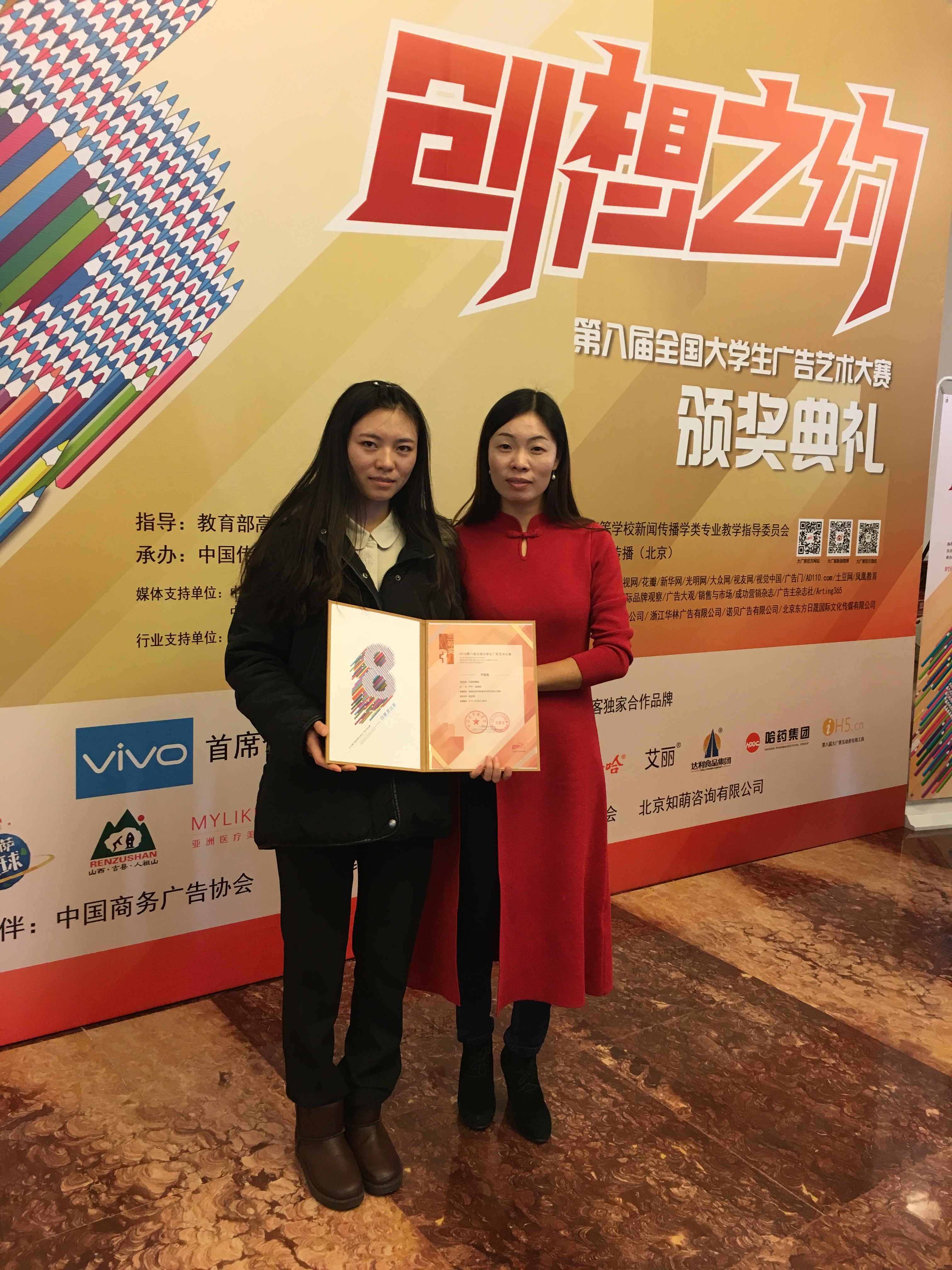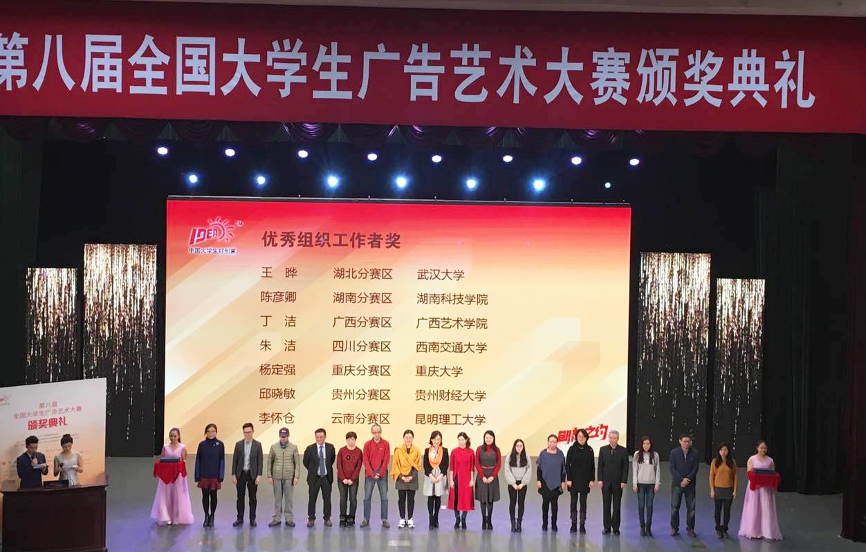 2016年11月27日,教育部学科竞赛第八届全国大学生广告艺术大赛颁奖典礼暨第九届全国大学生广告艺术大赛启动仪式在全国政协礼堂隆重举行,全国千名嘉宾代表、获奖师生齐聚北京,共襄盛举。据悉,该赛事历经5个月的角逐,全国2311所院校80万学生参赛、36万件参赛作品参评, 大赛竞争异常激烈。我校美术与艺术设计学院积极备战,成功举办了第八届全国大学生广告艺术大赛安博站官网登录入口_安博(中国)选拨赛;分别邀请了相关命题企业单位(披萨星球市场部经理、iH5市场总监)及学界专家到校宣讲选题和专题辅导。在此次大赛中美术与艺术设计学院学生严丹、赵铭钰创作的平面类作品《艾丽的舞蹈》获国家级三等奖,另外还有1项平面类作品和3项视频类作品荣获国家级优秀奖。此外,在湖南赛区,我校共获得4项一等奖,9项二等奖、12项三等奖、8项优秀奖的优异成绩,同时我校还获得“湖南省分赛区优秀组织奖”,陈彦卿副教授也光荣地获得了“全国优秀组织工作者”的荣誉,各类奖项均创下历史最好记录。