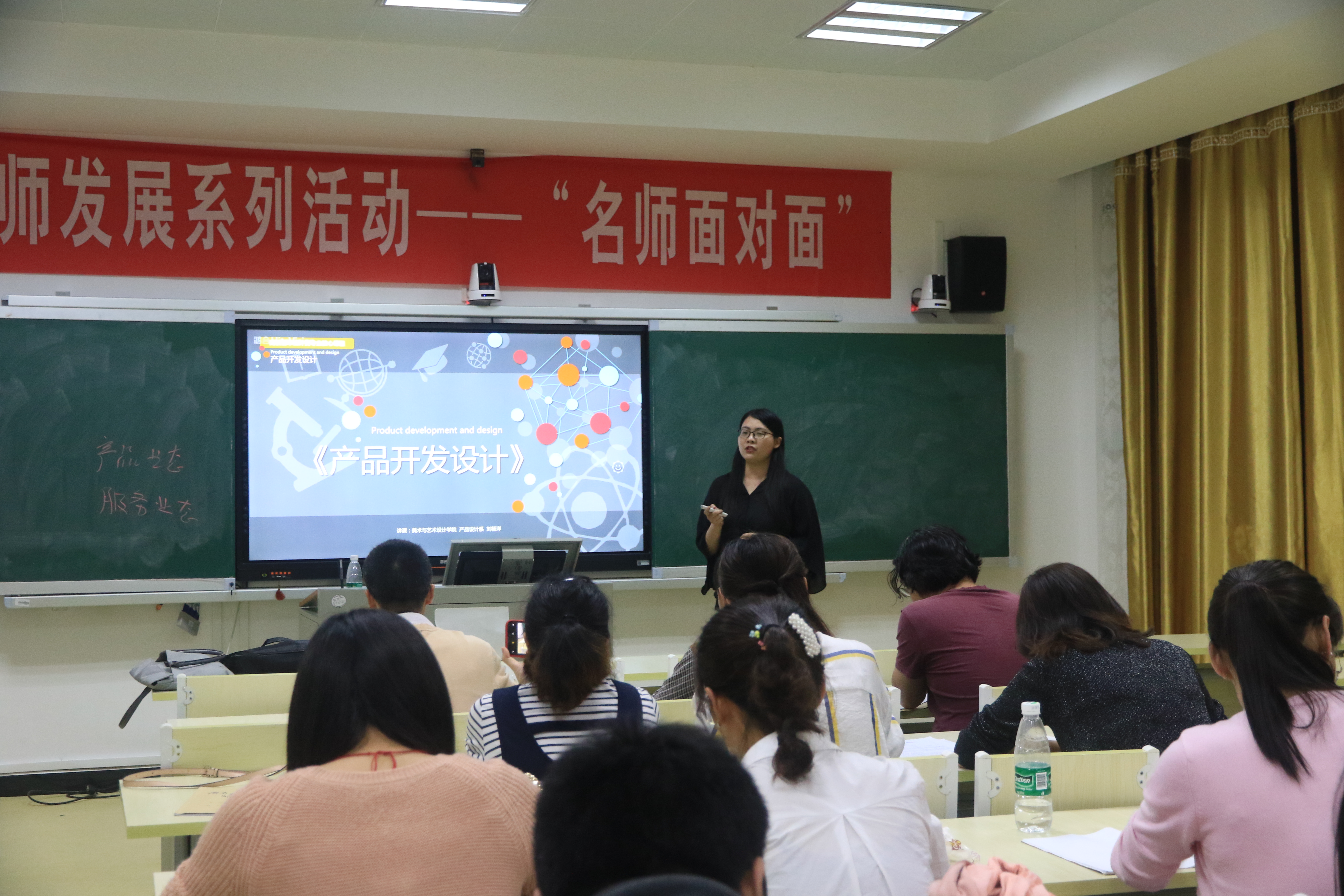 五位参赛教师们怀着饱满的教学热情,熟练运用现代化教学手段,能够很好地掌控课堂,引导学生参与互动答题,气氛活跃。经过激烈比拼,来自视觉传达设计系的邓子戈老师和产品设计系的刘杨洋老师脱颖而出。