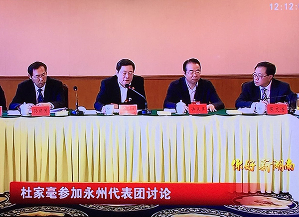 本网讯 11月17日,省委书记杜家毫参加永州市代表团讨论时强调:做活开放大文章,唱响创新主题曲。校党委书记陈弘发言,回忆了2013年5月3日杜家毫书记冒雨视察我校产学研基地的情景,汇报了我校推进“双一流”建设、建设高水平应用型大学的做法和打算。杜家毫书记饶有兴趣地询问了我校学科专业建设情况,对我校紧贴永州经济发展特色工科和依托地方历史文化打造优势文科的办学思路和做法表示肯定。他特别叮嘱道,科技学院是一个金字招牌,要珍惜。一定要围绕“科技”办学,突出“科技”特色,高度重视满足地方经济建设需要的学科专业建设,多出接地气、可转化的科技成果,面向基层培养留得住、用得上的实用人才。