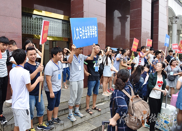 志愿者们热情地等待学弟学妹们的到来