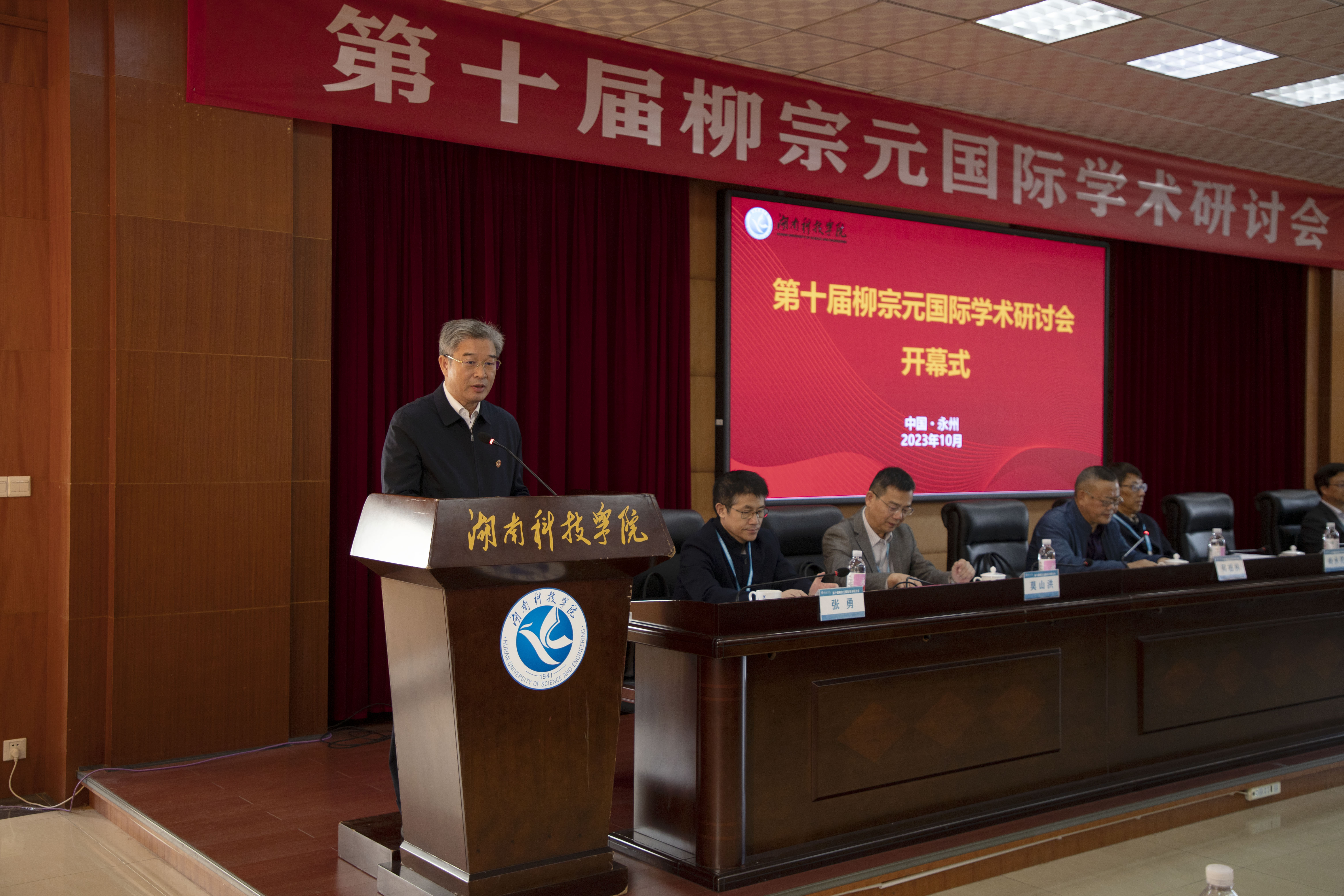 本网讯 10月21日至22日,由中国柳宗元研究会主办的第十届柳宗元国际学术研讨会在我校举行,来自国内外高校的百余位柳学专家学者齐聚永州,共同研究和探讨柳宗元的学术思想对中国历史进程与当下社会的深刻影响。党委副书记宋宏福致欢迎辞,副校长何福林主持开幕式。
