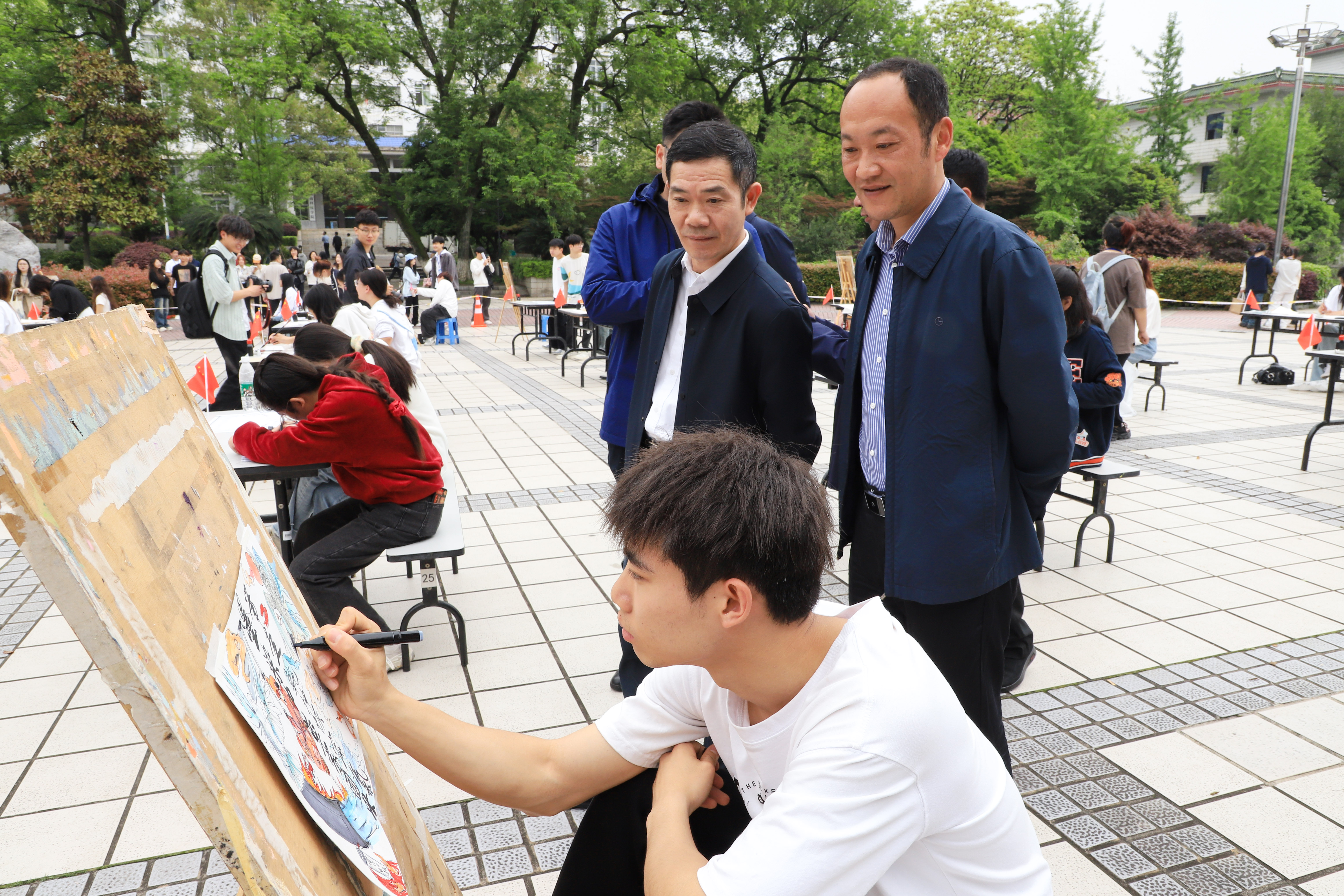 本网讯(通讯员  熊可维)为深入宣传总体国家安全观,增强全校师生国家安全意识,树牢总体国家安全观,4月10日,学校在舜德广场举办“笔走乾坤恢弘气,溢彩丹青绘国安”主题书画摄影大赛。党委委员、副校长吴小林,党委委员、组织部部长杨涛,学工部、团委负责人出席开幕式。