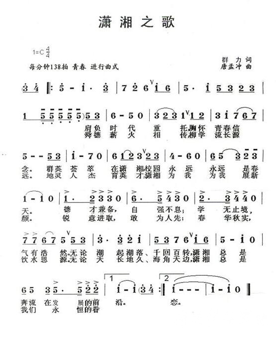校歌:《潇湘之歌》。
