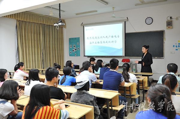 本网讯(通讯员 熊玲芝 李莉婷 摄影 何帅文)4月27日晚,永州人民广播电台资深主播、编辑,湖南广播联盟永州之声宣传中心副主任,湖南广播联盟永州之声节目部主任海燕对话我校媒体人。她与我校新闻中心广播站、记者站、电视台、新媒体中心的同学畅聊媒体人的坚守与成长,并结合主播实践认真解答同学们抛出的问题。