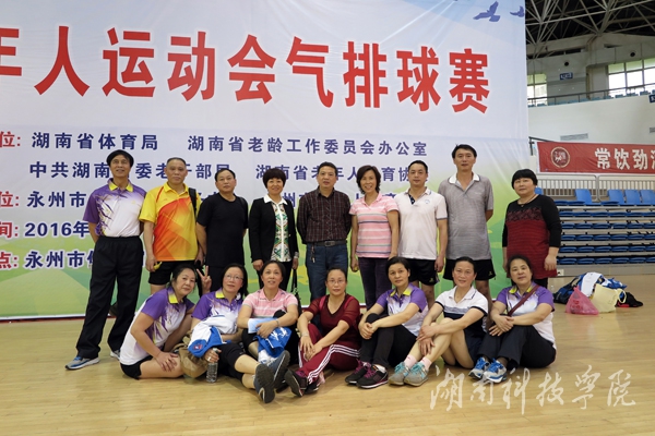 本次老年人运动会由湖南省体育局、省老龄委、省委老干局、省老年人体育协会联合举办。永州市老年体协、永州市全民健身服务中心承办,由我校代表永州市参加比赛。我校离退休工作处、工会共选派18名中老年队员,组男、女各一队,以学习、交流、提高、锻炼为目的,展示我校中老年人的精神风貌。(离退休工作处)