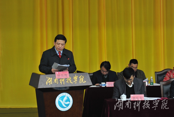 党委副书记、校长曾宝成作题为《聚焦目标任务,狠抓工作落实,为建设高水平应用型大学打下坚实基础》的工作报告。曾宝成在报告中总结回顾了去年学校工作。他指出,2015年,学校在省委省政府的正确领导下,全校上下认真贯彻落实党的十八大和十八届三中、四中、五中全会精神,深入学习贯彻习近平总书记系列重要讲话精神,遵循“六精”战略布局,励精图治,攻坚克难,圆满完成了学校《章程》核准与颁布、第三次党代会召开、干部竞聘上岗、绩效工资改革等在学校发展史上具有重要意义的一系列大事,在思想政治工作、人才培养、学科建设、科学研究、社会服务、内部管理等方面取得了可喜成绩,呈现出良好发展势头和广阔发展前景。