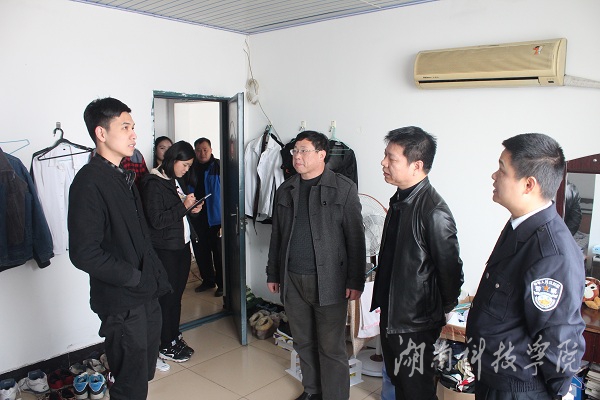 本网讯 (通讯员 罗晶 黎露琼 摄影 蒋磊)为切实加强对校外住宿生的管理、确保校外住宿生的安全,12月31日,副校长程智开带领学生处、保卫处相关负责同志前往外宿学生居住地进行集中走访,送去亲切关怀。