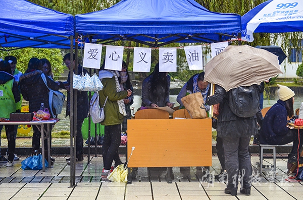 参赛的学生充分利用专业优势,开展各类活动。吉他弹唱才艺展示、出售油画、出售科院雕刻纪念品和现场手工艺品义卖,展示院系专业特色,获得各学院师生一致好评。其他团队同学则在学校附近与商家谈判拿来物资,卖水果、卖面包、卖化妆品、卖书籍和卖手工艺品,也挣了不少钱。一天下来,同学们共挣得5212元。