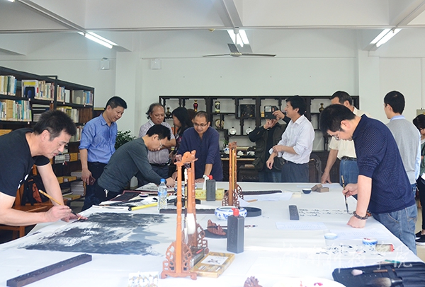 省书法家协会理事兼永州市书法家协会主席唐朝晖、中国美术家协会会员兼永州市美术家协会主席、原美术与艺术设计学院院长杨球旺、省书法家协会理事欧阳维忠、市书法家协会副主席陈刚、张玉波、宋运清、唐幼铎及书法家唐彦、周昌俊,我院美术与艺术设计学院周飞战、高双洋,以及爱好书法与绘画的文人墨客30多位前来参加此次活动,此次所创作的72幅佳作将由我校图书馆进行装裱、珍藏,以进一步营造图书馆浓郁的文化氛围。