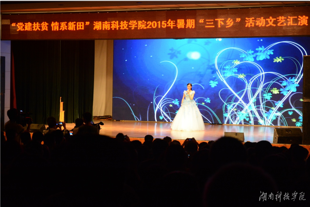 本网讯(通讯员 刘华剑)7月10日晚,“党建扶贫、情系新田”安博站官网登录入口_安博(中国)2015年暑期三下乡文艺汇演在新田县一中礼堂活力上演,来自音乐与舞蹈学院和体育学院的同学们为新田人民带来了一场青春与梦想的文艺盛宴,受到热烈欢迎,引发良好反响。校长曾宝成、校党委副书记唐艳明、副校长程智开等领导与该县县委书记唐军、县长秦山成等县领导及1500多名观众兴致勃勃地观看了演出。