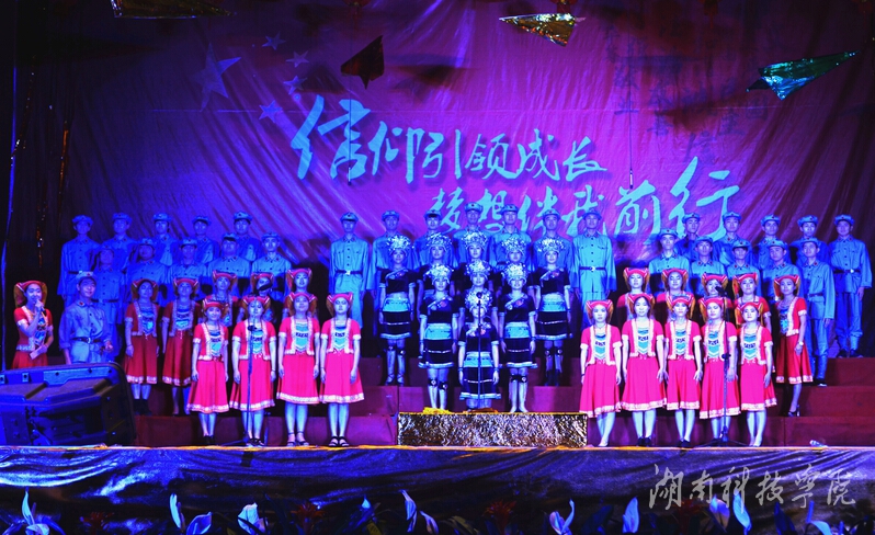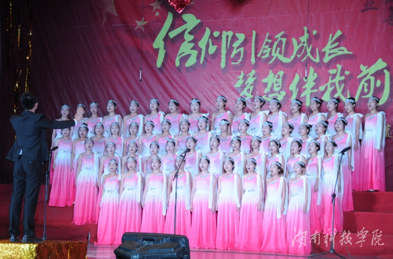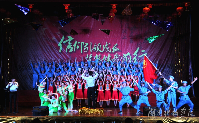 五月的春风情深意浓,五月的花海流溢飘香。比赛在青年教工团总支代表队带来的精彩朗诵《立师德铸师魂》中拉开序幕,老师们用慷慨激昂的语调,诉说教师的责任与担当,骄傲与自豪,诠释了湘科院人的精神和品质,表达了向张京华老师学习的决心和信心。外国语学院代表队的《走进新时代》唱响整场比赛的第一支歌,唱出我们新时代的特色和朝气蓬勃。体育学院代表队带来的《没有共产党就没有新中国》唱出了热血青年的斗志昂扬。马克思主义学院代表队高举毛主席头像,以一首《翻身农奴把歌唱》向祖国致敬。传媒学院代表队嘹亮动人的和声让人印象深刻,《文明在哪里》道出了青年学子的反思;《共筑中国梦》则唱出了大到国家小到个人的青春之梦。电子与信息工程学院代表队的《辅导员之歌》,唱出了学子对老师们最真挚的热爱。经济与管理学院代表队的《人民警察之歌》以整齐的合唱和动作展示出了英姿飒爽的青年风采。音乐与舞蹈学院代表队以表演的形式压轴出场,专业的表演获得了全场热烈的掌声。