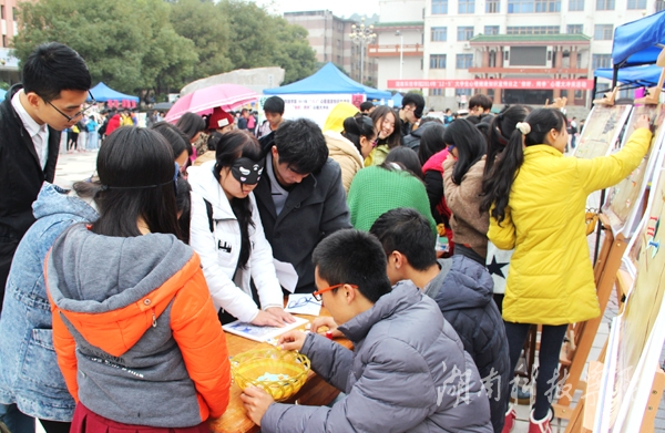 本网讯(记者 王夏威 段庭迁 莫苗苗 摄影 何帅文)12月6日上午,由学工部、团委、党委宣传部主办,大学生心理健康教育中心和14个系联合承办的“12·5”大学生心理健康知识宣传日活动在校园文化广场举行。学工部部长卢桂珍、生化系党总支书记何福林及相关系部负责人莅临活动现场指导。永州职业技术学院大学生心理健康教育中心主任万冬华率中心全体教师及10余名学生干部参加了现场活动。