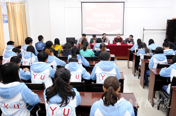 本网讯(校友办 供稿)为了更深入的开展校友工作,建立良好的沟通平台。11月20日下午,我校校友工作志愿者协会成立大会在行政办公楼709室顺利召开。校纪委书记彭立威、党委宣传部部长蒋亚军、招生就业处负责人胡清华、校友办负责人谷利民和校团委社团负责人唐君出席会议,学社联、部分社团负责人及校友工作志愿者协会全体成员与会,会议由胡清华主持。
