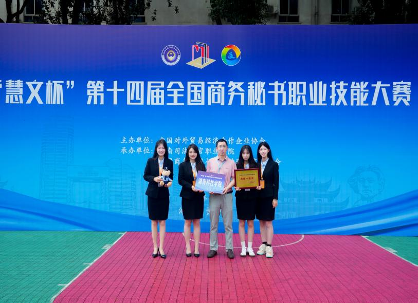 本网讯(通讯员 靳晶 张晴 周于莙 章子悦)近日,“慧文杯”第十四届全国商务秘书职业技能大赛在湖南司法警官职业学院举行,我校由文法学院谷显明、莫顺斌、何建良、于皓、曾芳、宋艳旭等老师指导,何建良老师带队参赛,秘书学专业张晴、靳晶、周于莙、章子悦组成的参赛队伍表现突出,以优异的成绩荣获团体一等奖,凸显了我校应用型人才培养的专业水平,展现了秘书专业学子的优良精神风貌。