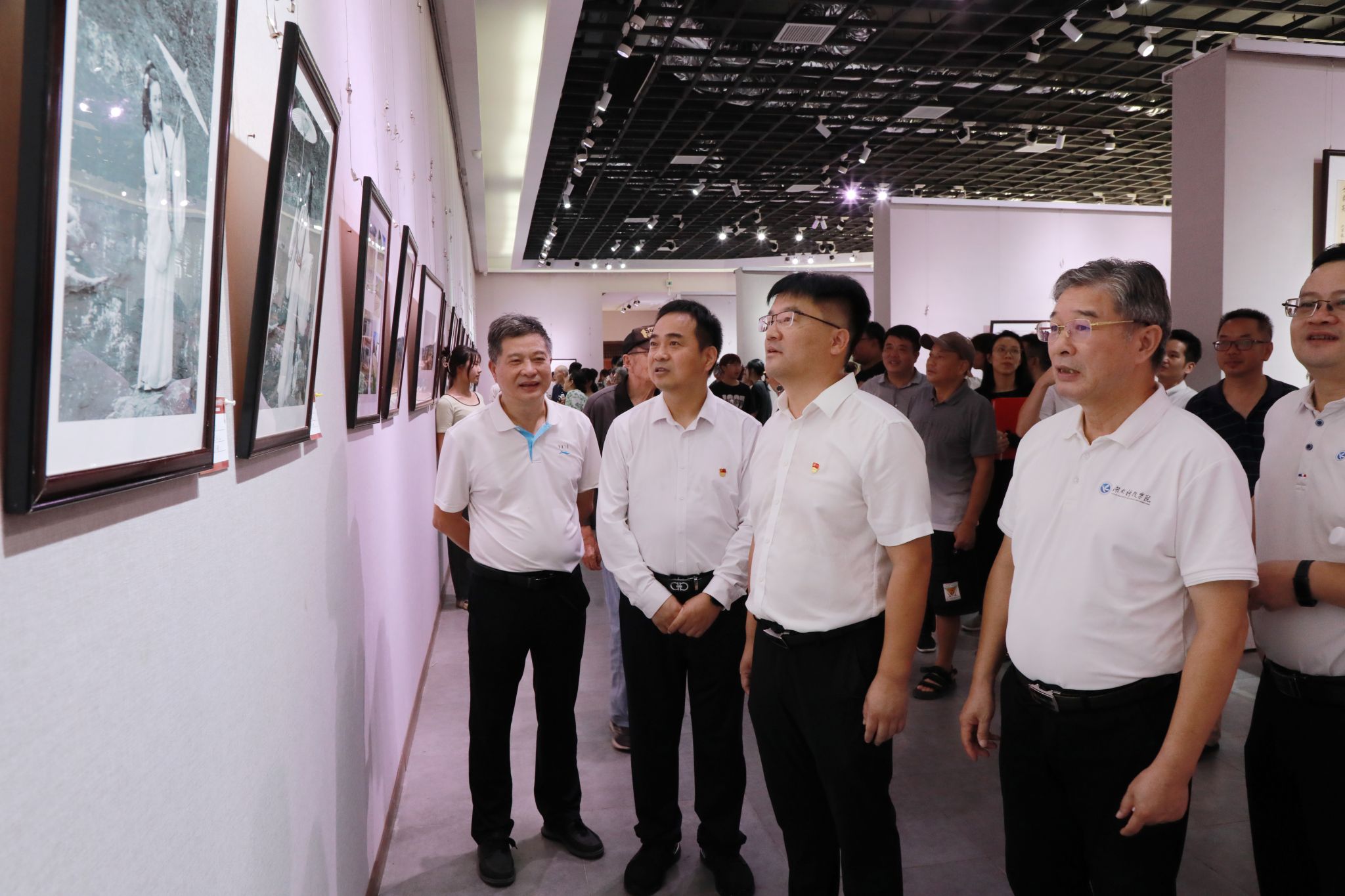 本网讯(记者 袁馨 摄影 谢志豪)为庆祝新中国成立75周年,弘扬真善美、礼赞新时代,9月30日上午,我校“增添正能量、共筑中国梦”离退休教职工书画摄影展在美术楼展览厅开幕。校党委书记李钢、党委副书记、校长黄创霞,党委副书记宋宏福,党委委员、组织部部长杨涛出席活动,开幕式由宋宏福主持。